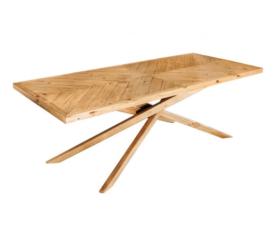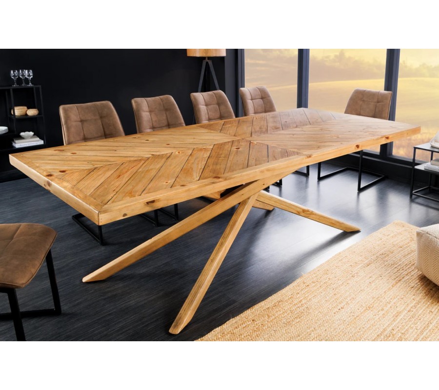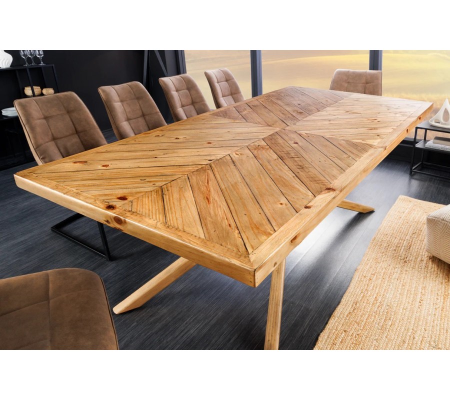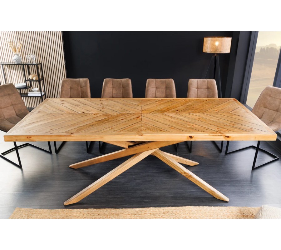 Stylový masivní venkovský obdélníkový jídelní stůl Arix v hnědé barvě s překříženými nožičkami a parkertovým designem 200 cm