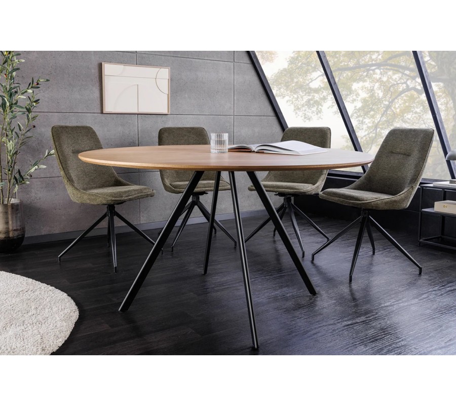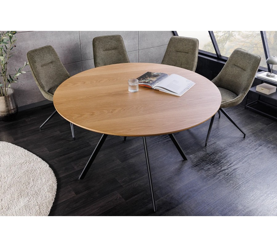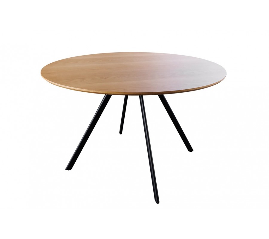 Jídelní stůl Maderia spojuje teplý vizuál dubového dřeva s moderním designem s nádechem industriálního stylu. S průměrem 120 cm poskytne místo pro čtyři osoby.