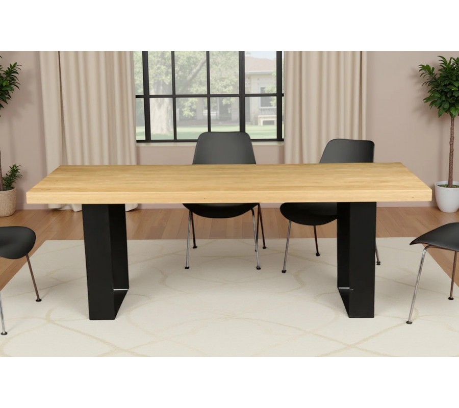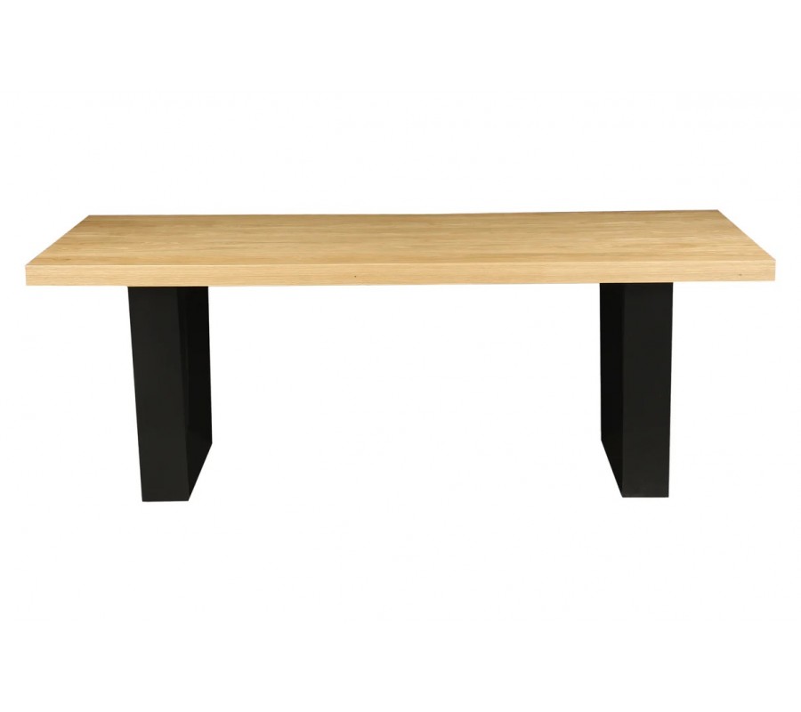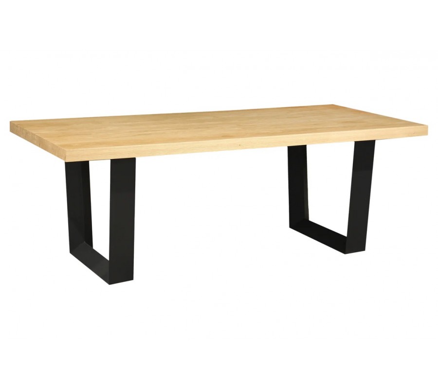 Moderní jídelní stůl Dias s obdélníkovou deskou v hnědém dubovém provedení se dvěma černýma nohama ve tvaru U 210 cm