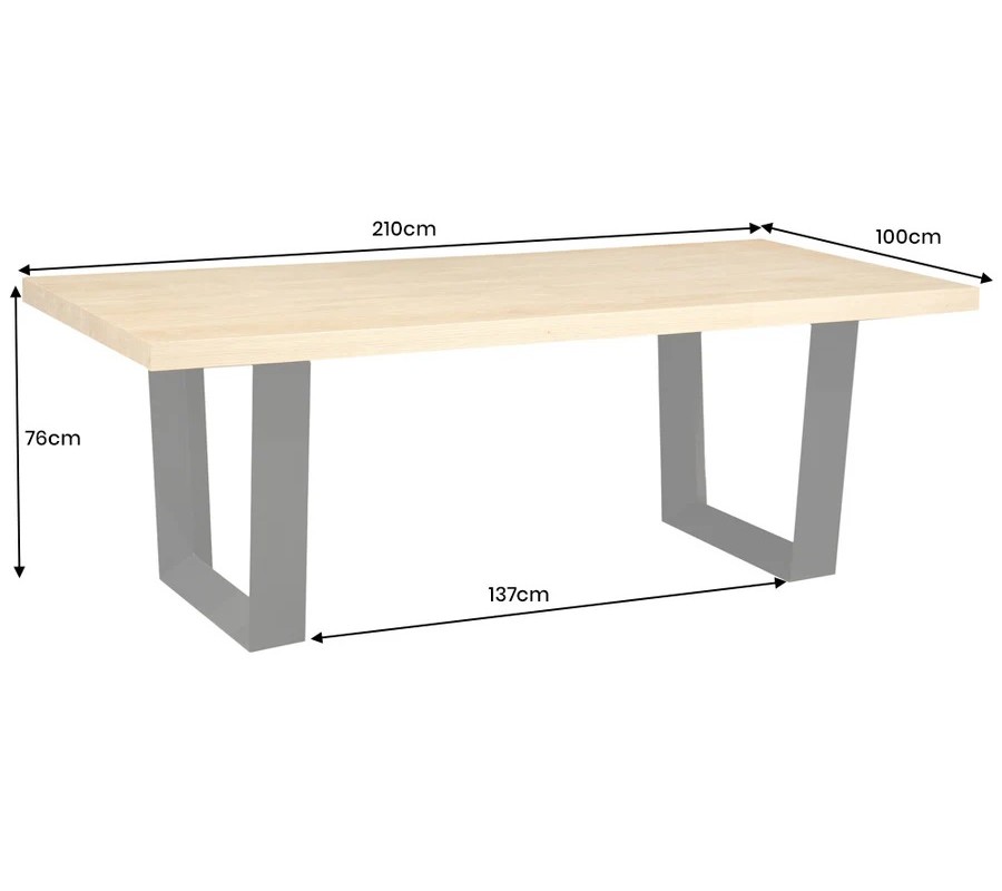 Jídelní stůl Dias spojuje teplý vizuál dubového dřeva s moderním stylem s nádechem industriální estetiky. S délkou vrchní desky 210 cm poskytne místo pro 6 až 8 osob.
