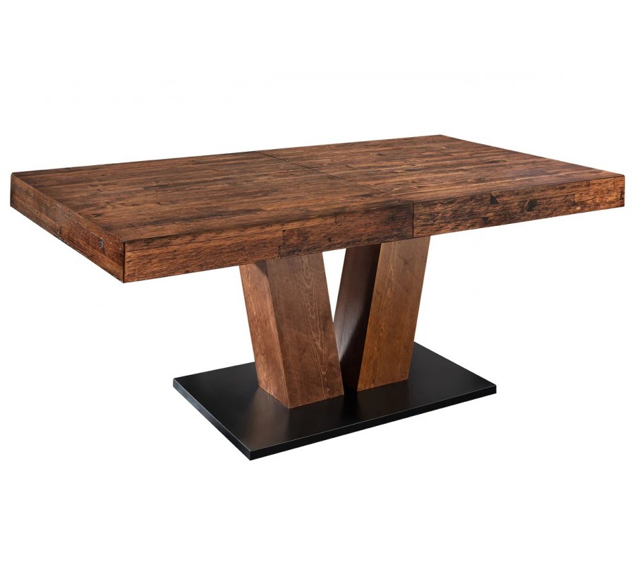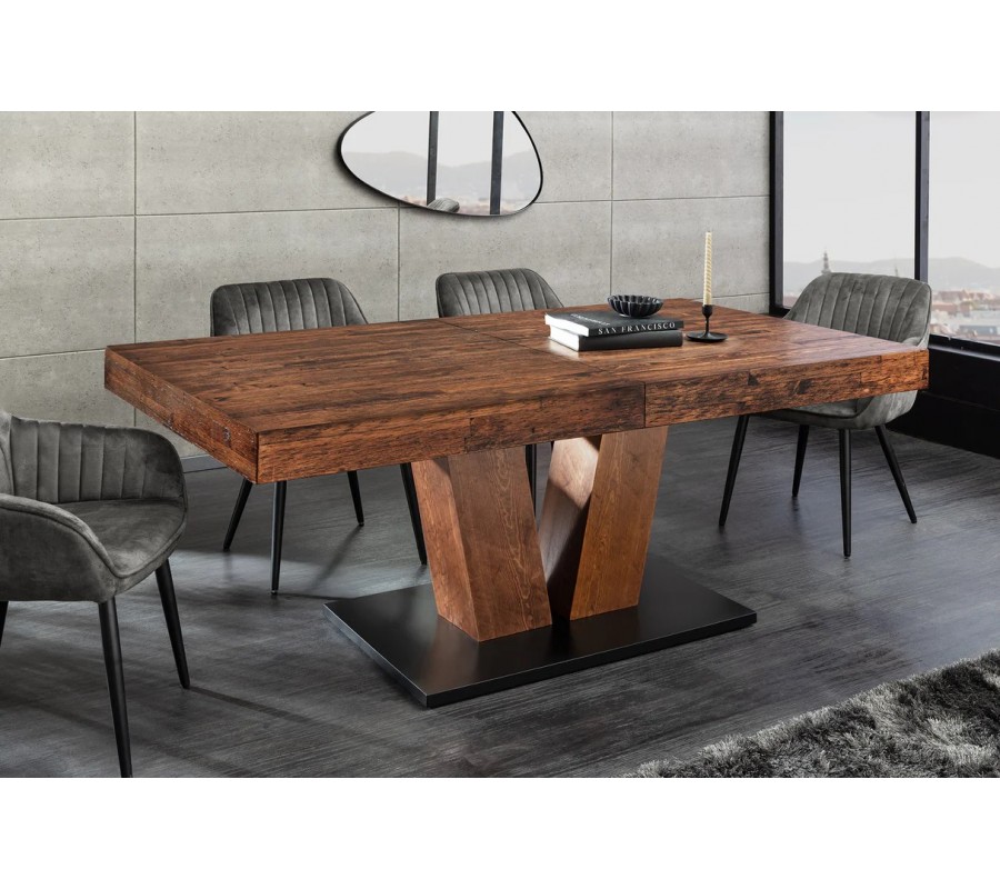 Moderní venkovský rozkládací hnědý jídelní stůl Sawyer s obdélníkovou deskou a dvěma nohama s černou podstavou 160-200 cm