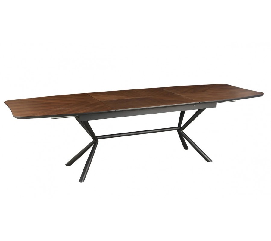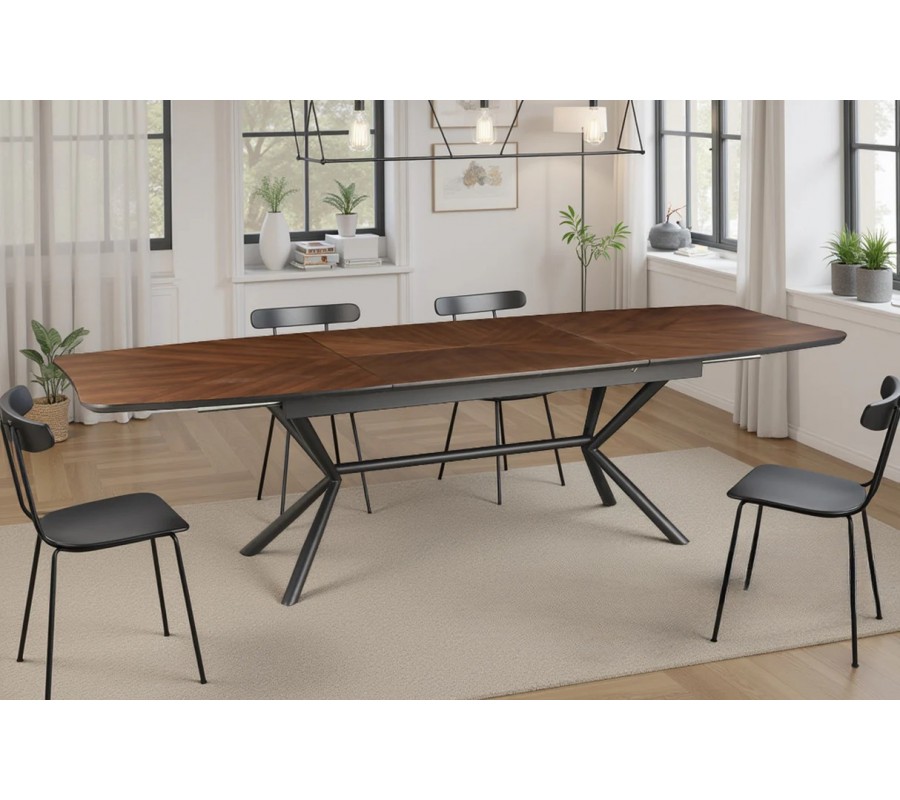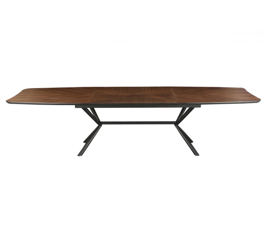 Moderní rozkládací jídelní stůl Arkline s obdélníkovou deskou v ořechovém hnědém provedení s černou podstavou 180-270 cm