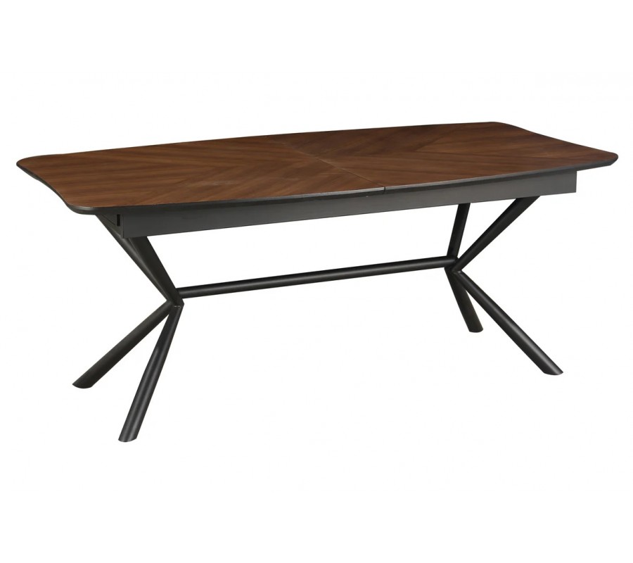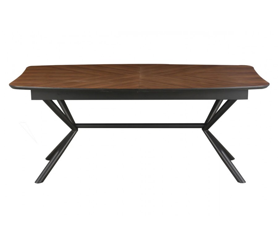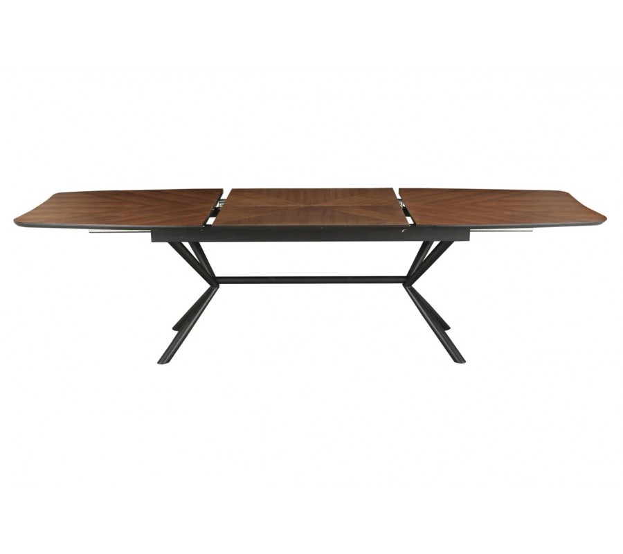 Moderní rozkládací jídelní stůl Arkline s obdélníkovou deskou v ořechovém hnědém provedení s černou podstavou 180-270 cm