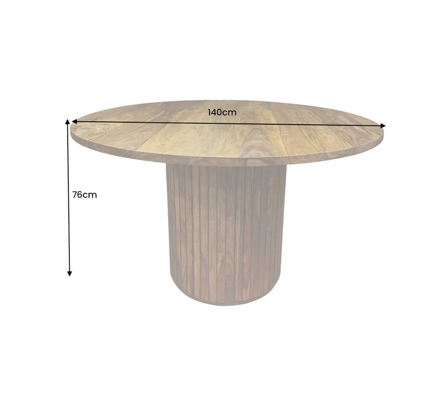 Při průměru 140 cm se za stolem pohodlně usadí 5 až 6 osob, přičemž šest osob má komfortní prostor pro každodenní stolování.