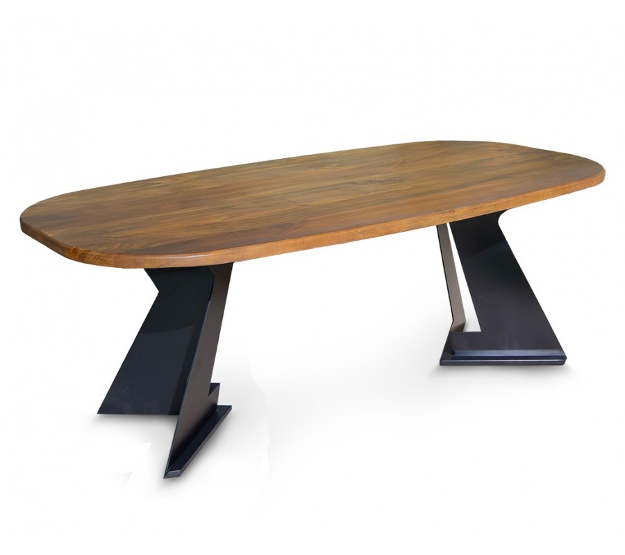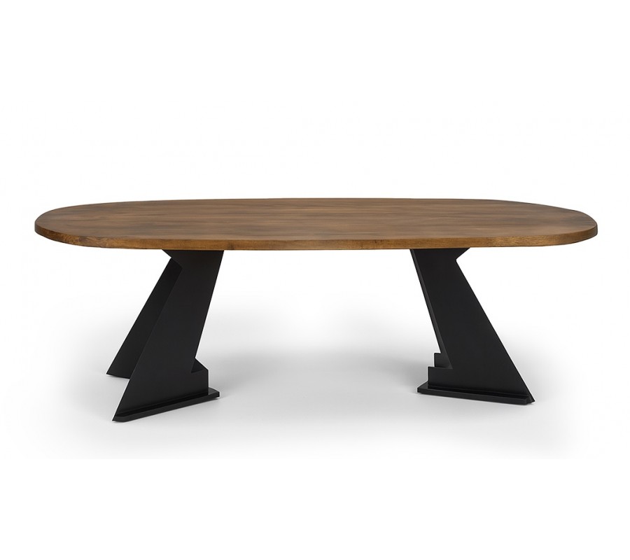 Luxusní moderní oválný jídelní stůl Treviso s masivní hnědou mangovou deskou a designovým černýma nohama 200 cm