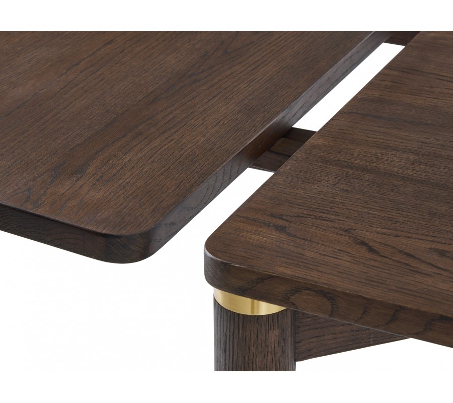 Art deco masivní obdélníkový rozkládací jídelní stůl Linia v tmavě hnědé barvě se zlatými detaily 180-280 cm