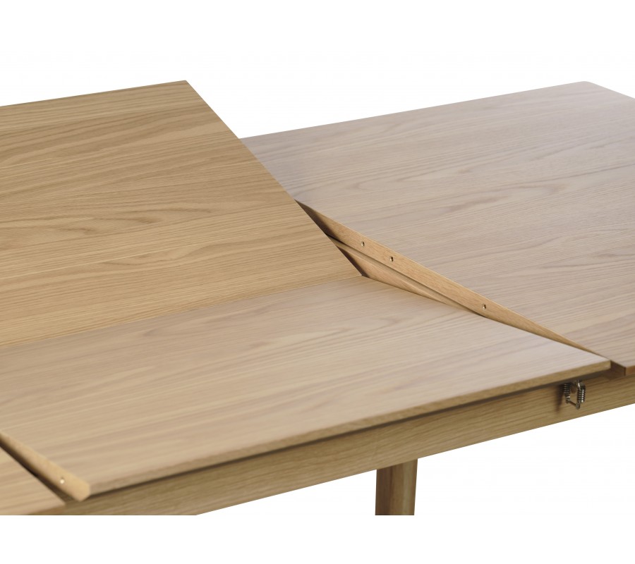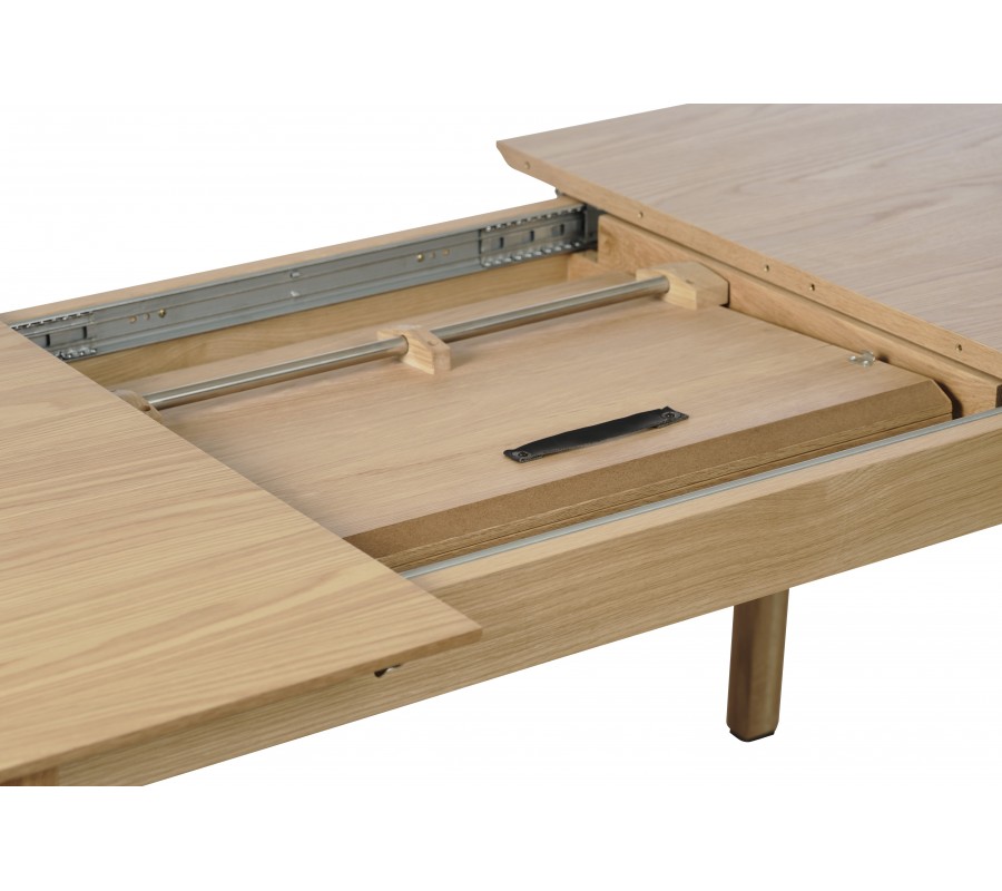 Vrchní deska je předělena na dvě části, které lze od sebe odtáhnout, přičemž se uprostřed vyklopí dva prodlužovací panely. Ve složeném stavu má délku 190 cm a poskytne stolovací místo pro šest až osm osob. Při rozložení se prodlouží na 290 cm a kapacita se zvýší na deset osob.