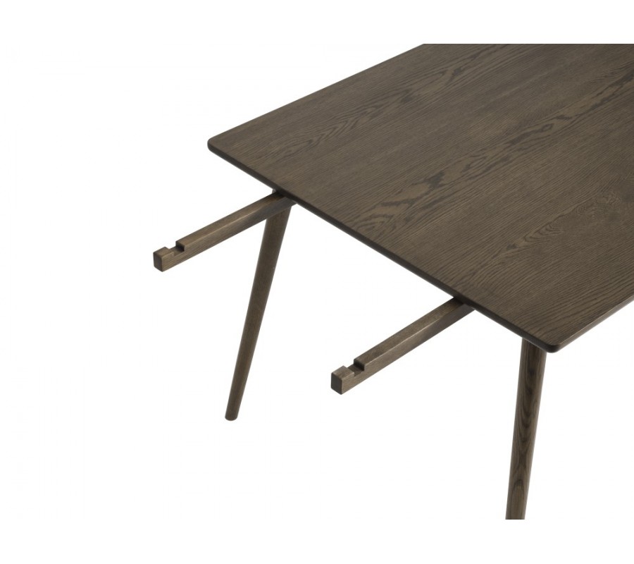 Stůl je vyroben z kombinace dýhovaného a masivního dubového dřeva. Tmavé hnědé lakování působí sofistikovaně a typicky seversky. Nechává zachovanou přirozenou pravidelnou kresbu letokruhů, zdůrazňující přírodní vizuál.