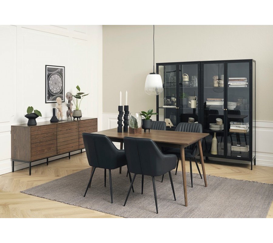 Jídelní stůl Aarhus výborně doplní prostory zařízené ve skandinávském nebo severském stylu, kde jej můžete zkombinovat s úložnými prostory z tmavého masivního dřeva, kobercem z přírodního vlákna v zemitých odstínech či s naturálními kamennými doplňky. Jeho silueta se krásně propojí is příborníkem se šikmými nožičkami a můžete také přidat židle se sametovým potahem ve výrazných barvách pro stylový retro vizuál. Skvělou volbou jsou i další modely ze stejné kolekce Aarhus.