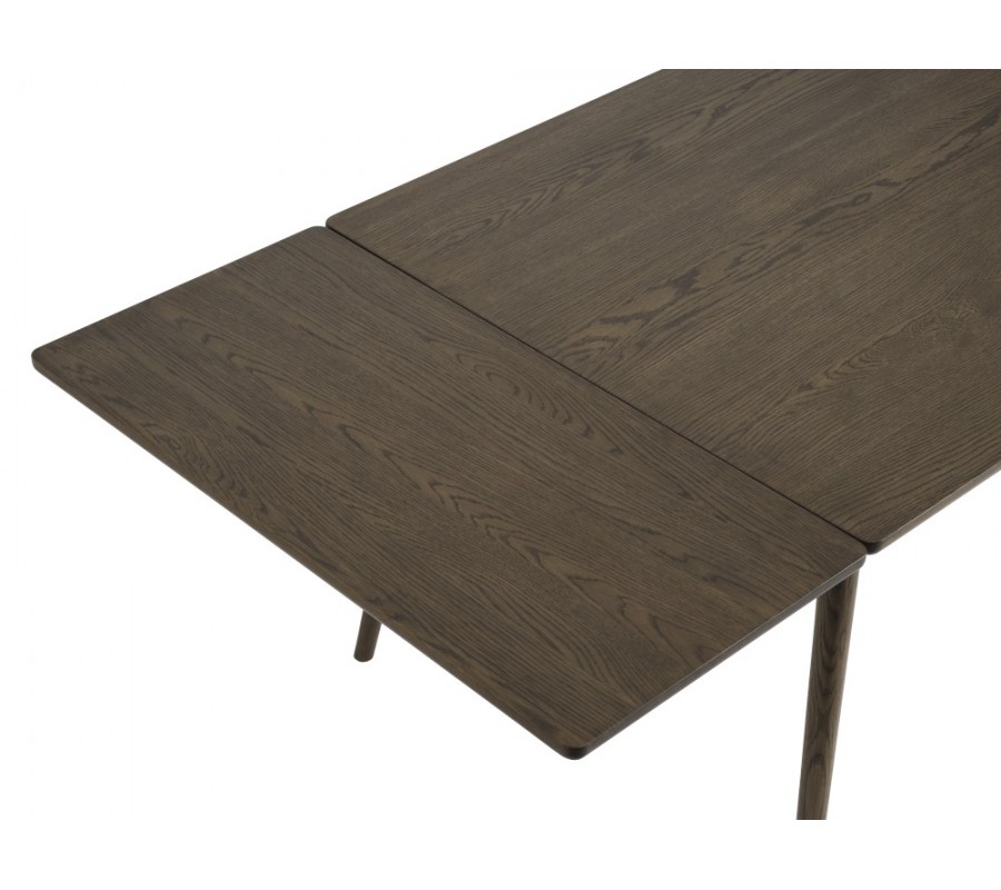 Designový retro tmavý hnědý jídelní stůl Aarhus s obdélníkovou rozkládací vrchní deskou a šikmýma nohama 150-240 cm