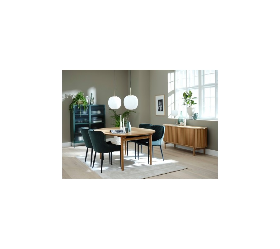 Jídelní stůl Roskilde vynikne jako středobod prostorů zařízených v skandinávském stylu. Můžete jej zkombinovat s úložnými prostory ze světlého masivního dřeva, kobercem z přírodního vlákna či středovou dekorací v podobě živé zelené rostliny. Retro estetiku zase zvýrazní barevné židle se sametovým potahem, které přinesou do jídelny stylový akcent. Skvělou volbou jsou i další elegantní modely ze stejné kolekce Roskilde.