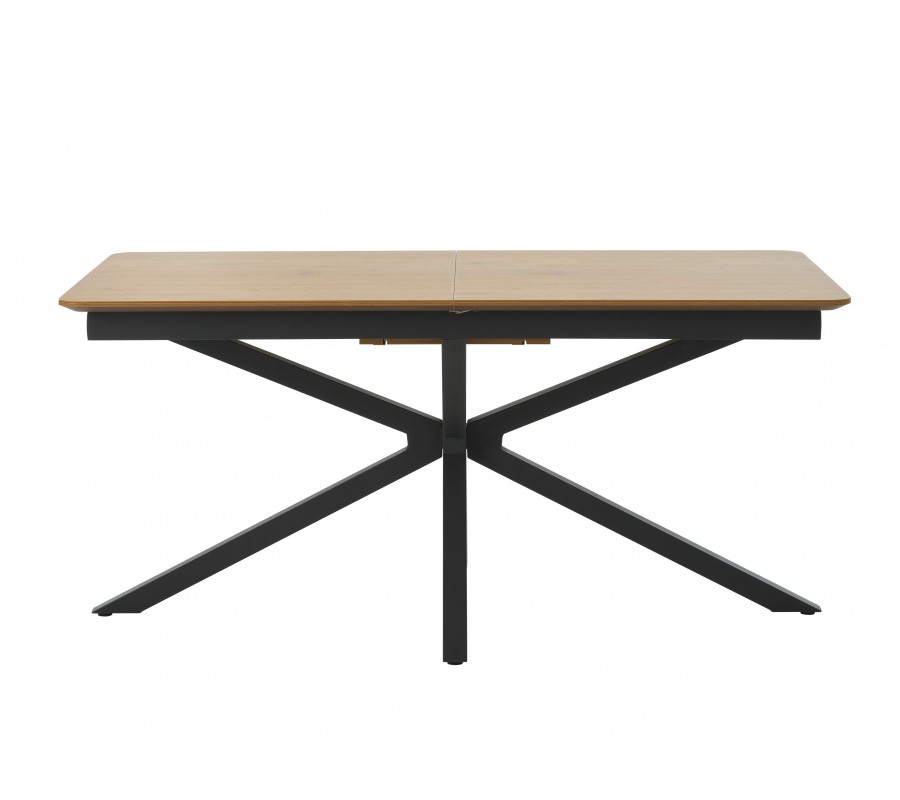 Industriální rozkládací jídelní stůl Holstebro s obdélníkovou deskou v dubové hnědé barvě s černýma nohama 160-200 cm