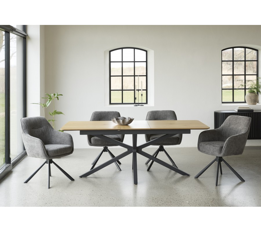 Jídelní stůl Holstebro vás okouzlí moderním minimalistickým stylem s nádechem industriální estetiky. Kromě elegantního vizuálu oceníte také praktickou rozkládací funkci.