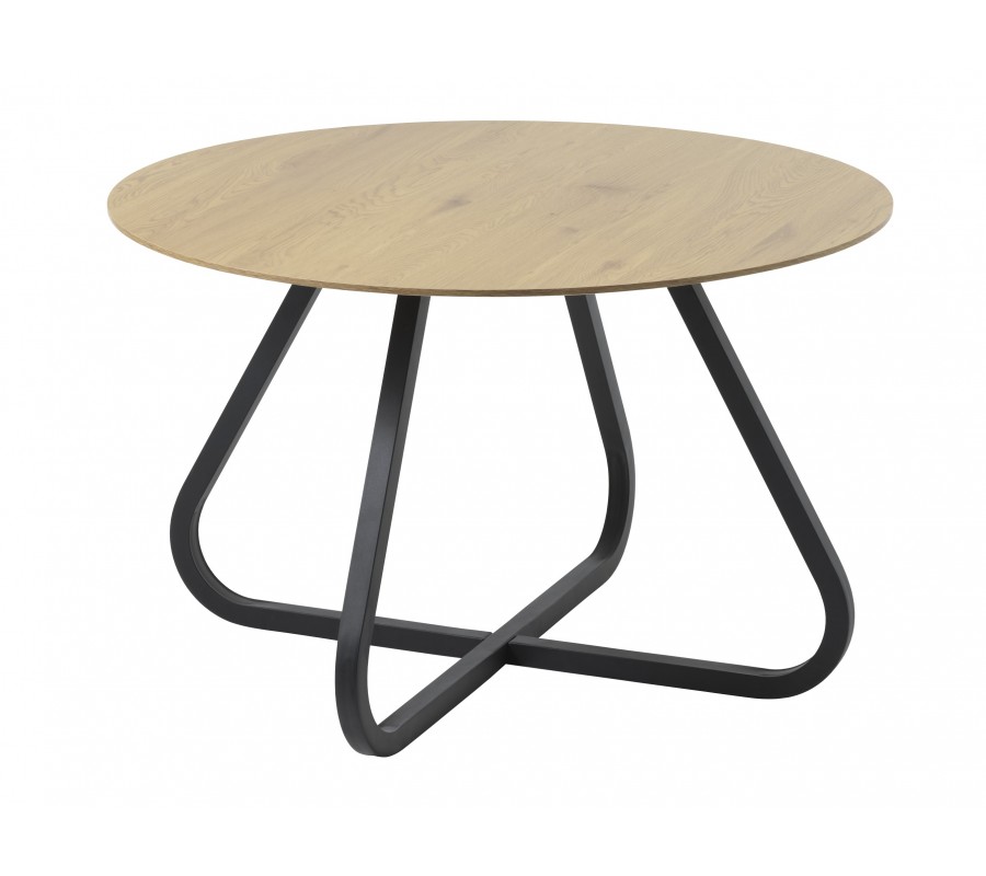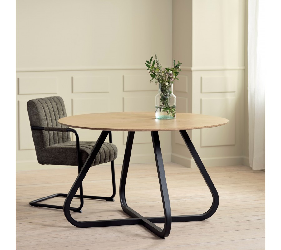 Designový industriální kulatý jídelní stůl Holstebro s dubově hnědou deskou a černou kovovou podstavou 120 cm