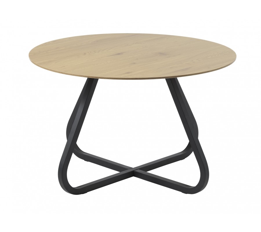 Designový industriální kulatý jídelní stůl Holstebro s dubově hnědou deskou a černou kovovou podstavou 120 cm