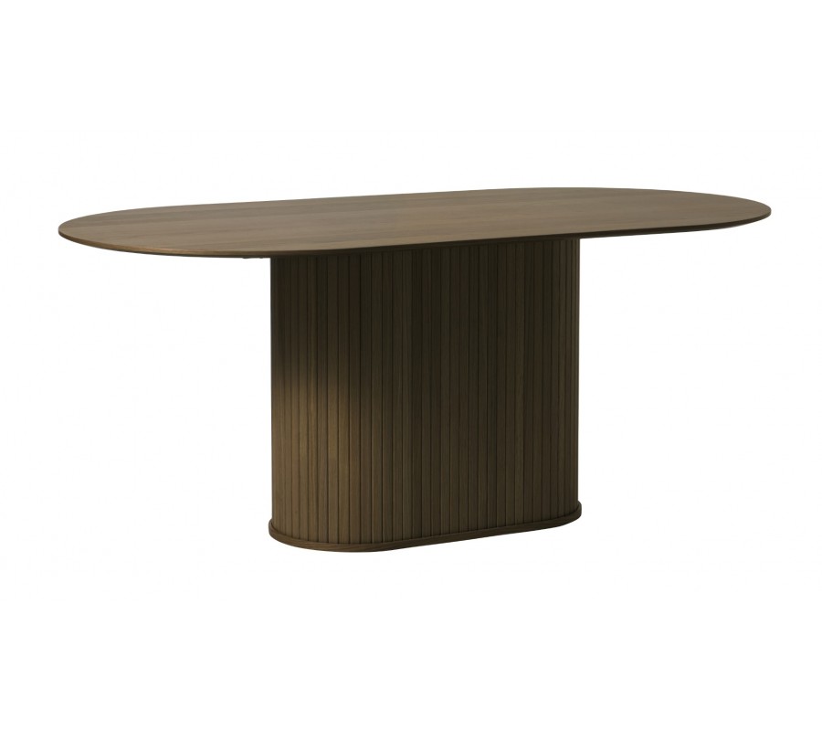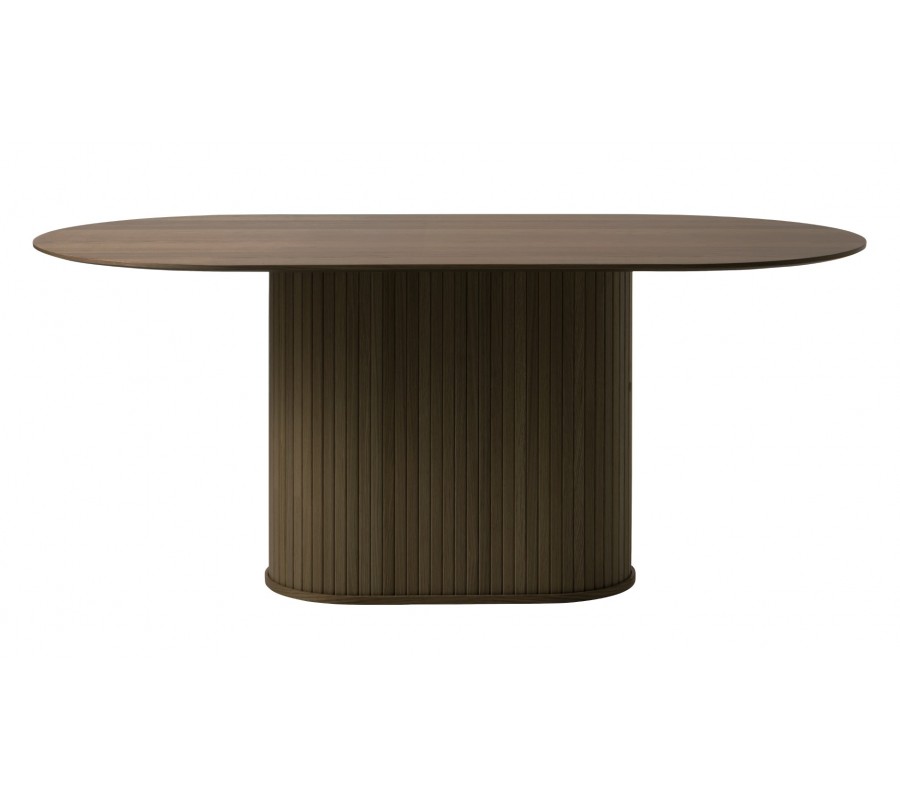 Produkt A12477Retro oválný jídelní stůl Bornholm s hladkou deskou a lamelovou nohou v tmavém hnědém dubovém provedení 180 cm