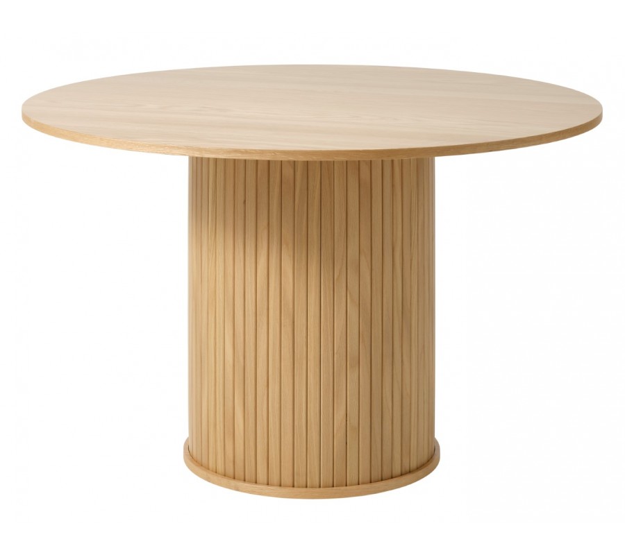 Skandinávský kulatý jídelní stůl Bornholm s nohou s lamelovým dekorem v přírodním světlém hnědém dubovém provedení 120 cm
