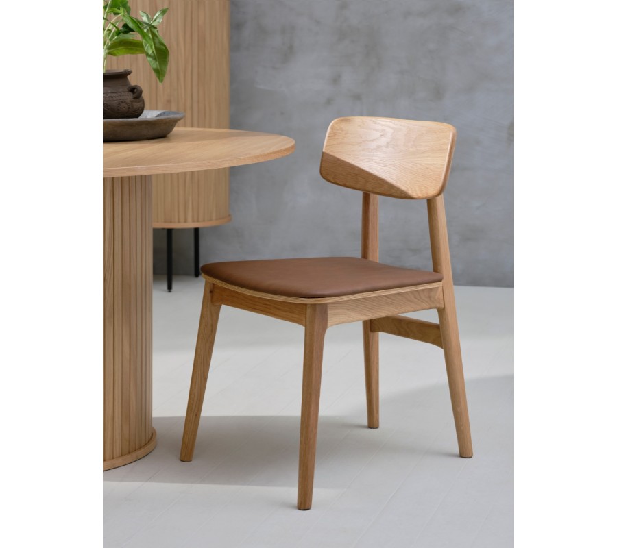 Stůl je vyroben z pravé dubové dýhy, kombinované s MDF. Světlá hnědá barva dřeva mu dodává charakteristický skandinávský výraz a přiznaná pravidelná kresba letokruhů zdůrazňuje přírodní charakter materiálu.