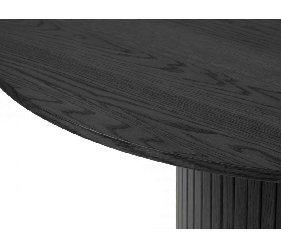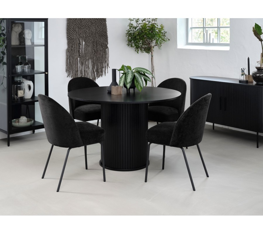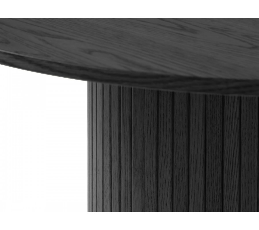 Moderní kulatý jídelní stůl Bornholm v černé barvě s hladkou deskou a mohutnou nohou s vertikálními lamelami 120 cm