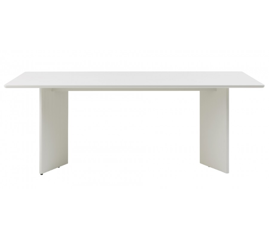Moderní obdélníkový jídelní stůl Hvidea se dvěma designovými nohami s žebrovaným reliéfem v béžově šedém odstínu greige 200 cm