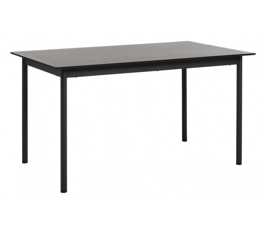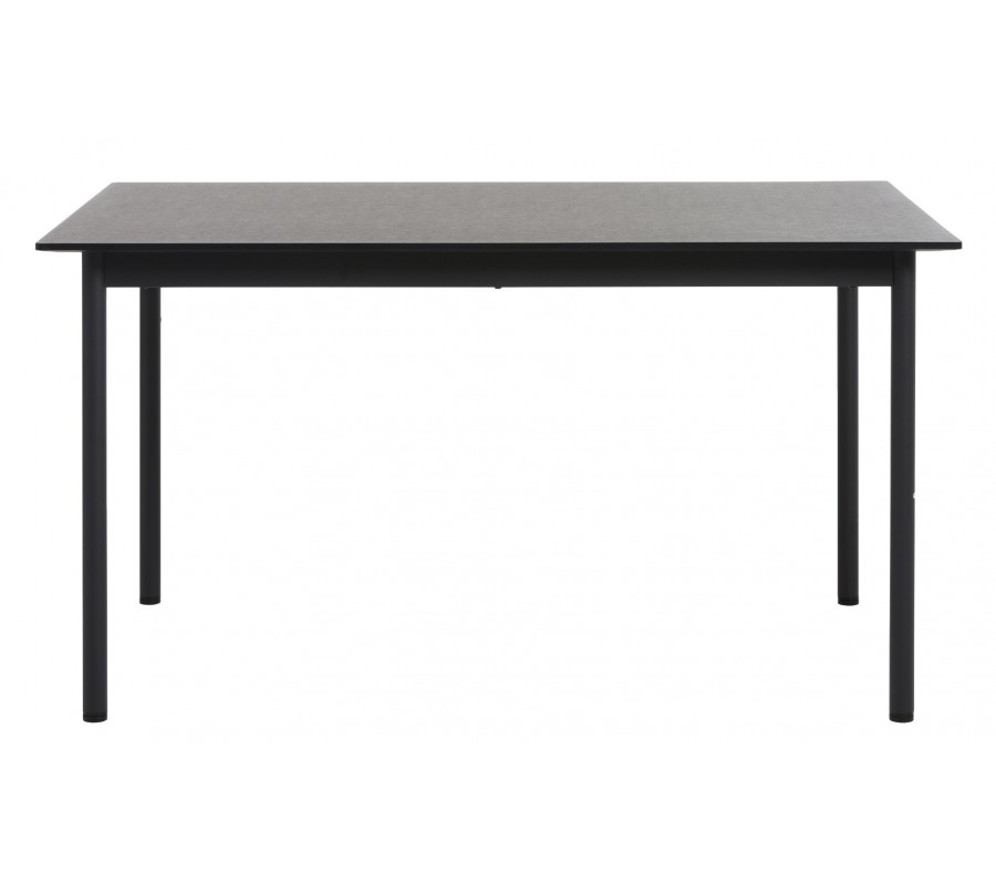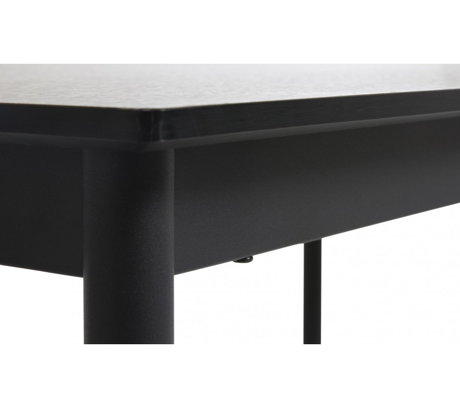 Podstava je vyrobena z kovu, také včerné barvě a dodává nábytku industriální akcent. Nohy mají štíhlý válcovitý tvar, díky kterému působí stůl odlehčeně a hodí se tak i do menších prostor. Pod vrchní deskou jsou propojeny obdélníkovým rámem pro ještě lepší stabilitu a pevnost.