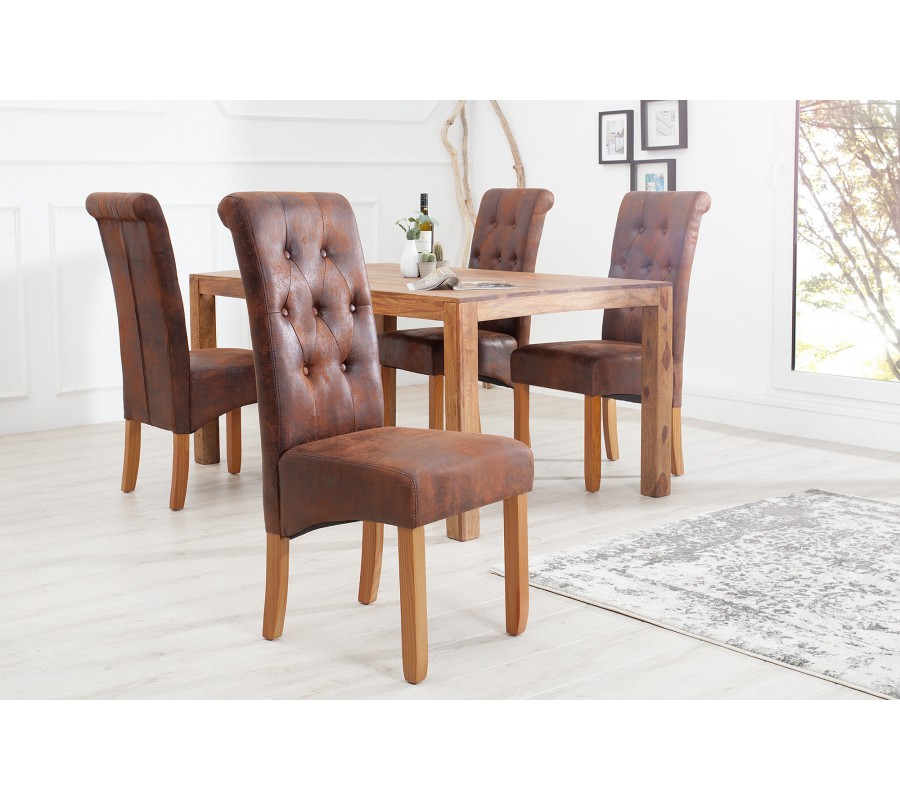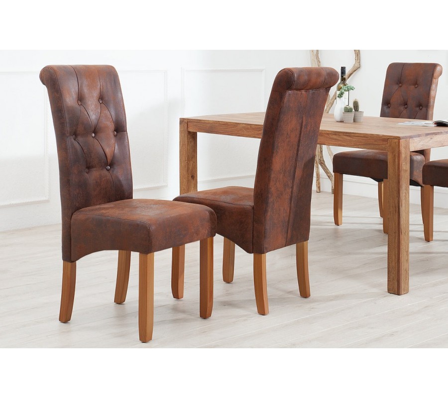 Venkovská jídelní židle Valentino s vysokým opěradlem a hnědým potahem a prošíváním 110 cm