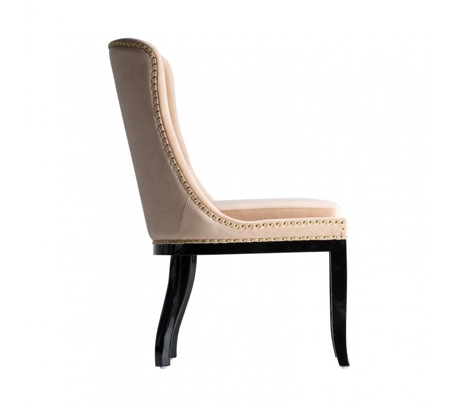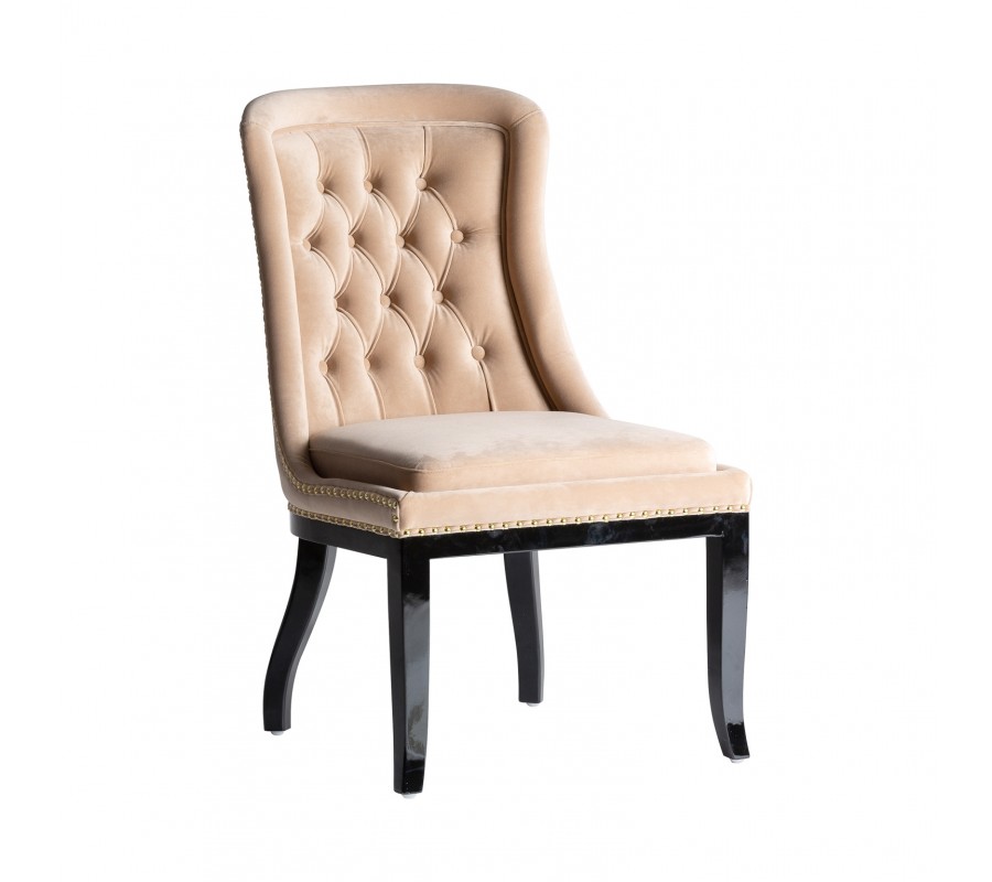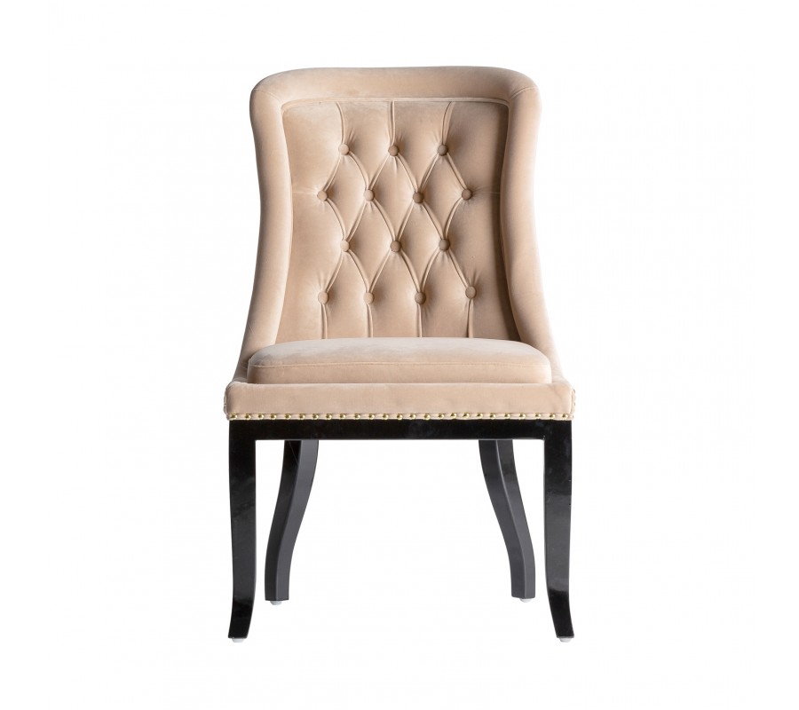 Stylová jídelní židle Austin v krémové barvě vytvoří elegantní nádech ve vašem interiéru díky svému designovému provedení. Sametové čalounění v krémovém odstínu je doplněno prošíváním na zaoblené zádové opěrce, které připomíná chesterfield styl, a také židle disponuje designovými druky po vnější straně sedací části a opěrky. Tyto vlastnosti vytvářejí židli retro nádech, který je v neposlední řadě doplněn černými masivními zaoblenými nožičkami. Komfortní sezení zajistí zmíněné sametové čalounění, stejně tak sametový podsedák, který vám v kombinaci se zaoblenou zádovou opěrkou vytvoří pohodlí při stolování. Díky svému krémovému čalounění a černým nožičkám doporučujeme kombinovat jídelní židli Austin v tmavých domácnostech nebo podnicích či firem s černým masivním nábytkem a světlými sedačkami v podobném stylu.
