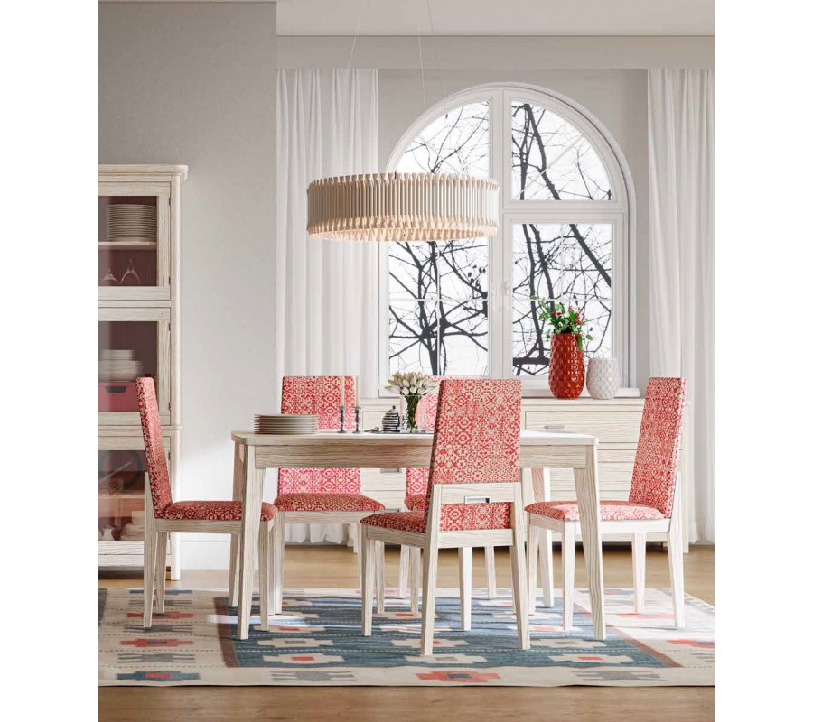stoličky Rodas se vyrábějí na zakázku z kvalitního masivního dřeva, které poskytuje nábytku pevnost a odolnost vůči vlivům každodenního používání. Rám pokrývá pěnové čalounění a na dotek příjemný textilní potah. Barevné provedení si můžete vybrat z nabídky vzorovníku, kde naleznete naturální, ale také syté a pastelové lakování dřeva, které můžete doplnit sofistikovaným jednobarevným potahem či výraznějšími florálními nebo geometrickými vzory.