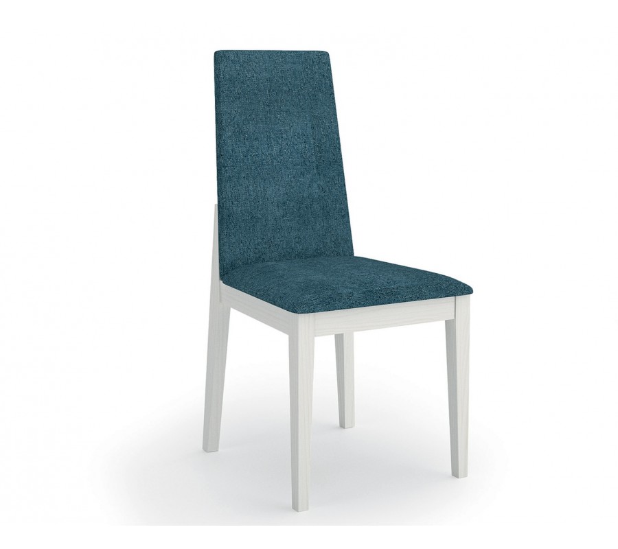 stolička má moderní lineární siluetu. Obdélníkové sedátko je v přední části rozšířeno, což zvyšuje pohodlí a hranatá zádová opěrka se směrem nahoru mírně zužuje a dodává židli elegantní vzhled. Čtyři nožičky mají hranatý profil a ve spodní části jsou zúžené. Zadní pár přechází do stylového nízkého rámu ve spodní části zádové opěrky, který vytváří minimalistický dekorativní akcent.
