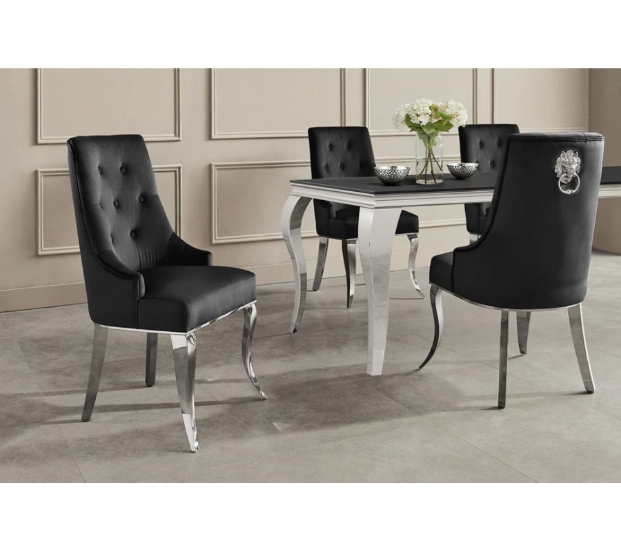 Designová glamour jídelní židle Modern Barock s chromovýma nohama a černým sametovým potahem s klepátkem 100 cm