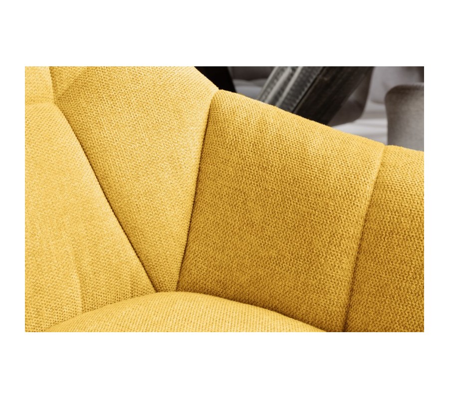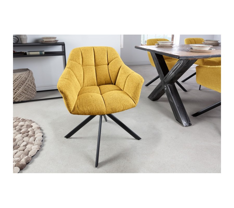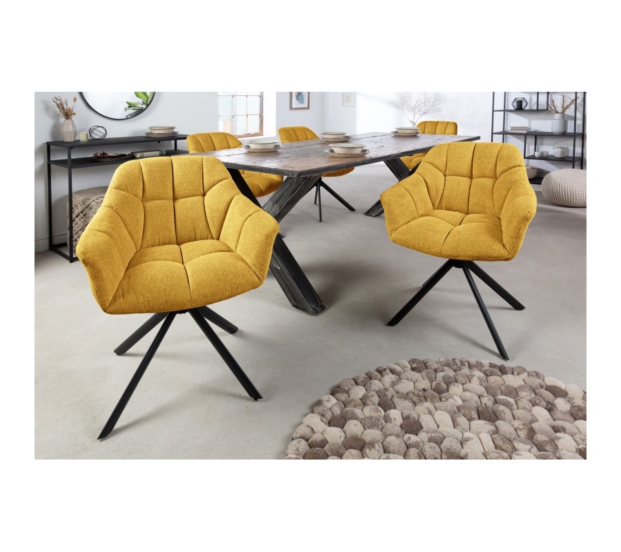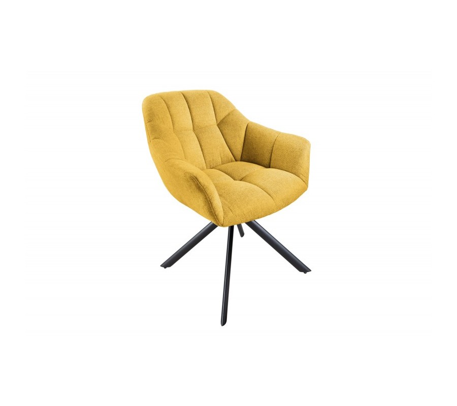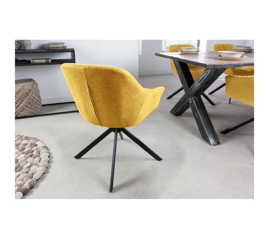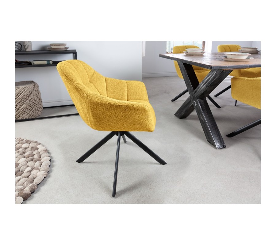 Moderní otočná jídelní židle Mariposa se žlutým čalouněním a černými kovovými nohami 83cm