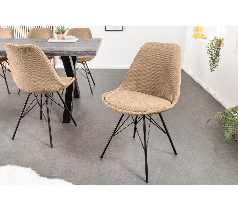 Moderní designová židle Scandinavia se manšestrovým čalouněním v ovesné barvě