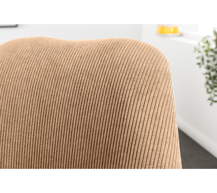 Designová moderní židle Scandinavia osloví čistým a minimalistickým designem typickým pro skandinávský styl. Originální mančestové čalounění ve světle hnědé ovesné barvě se výborně hodí k dřevěným povrchům. V kombinaci se světlými neutrálními barvami vám pomůže vytvořit neutrální a nadčasový vzhled prostoru dýchajícího skutečným duchem Skandinávie. Spodní část tvoří kovové nožičky s černým práškovým nástřikem, které dodávají židli prvky industrialismu a proto ji snadno zakomponujete do jídelny v tomto stylu. Díky tomu můžete židli zkombinovat s jednálenským stolem a dalším nábytkem s podobnými kovovými prvky. Pohodlí Vám zaručí zádová opěrka vysoká 42 cm a sedací část o rozměru 45x40 cm ve výšce sedu 49 cm. Židle má nosnost 120 kg.