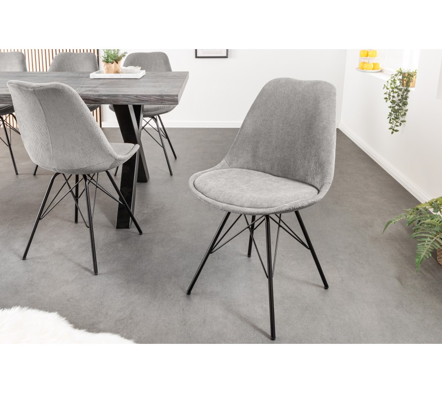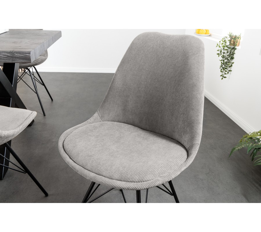 Designová moderní židle Scandinavia s manšestrovým šedým čalouněním