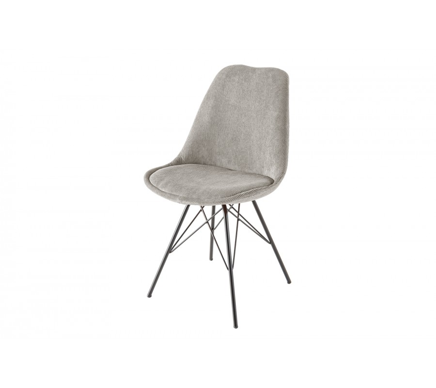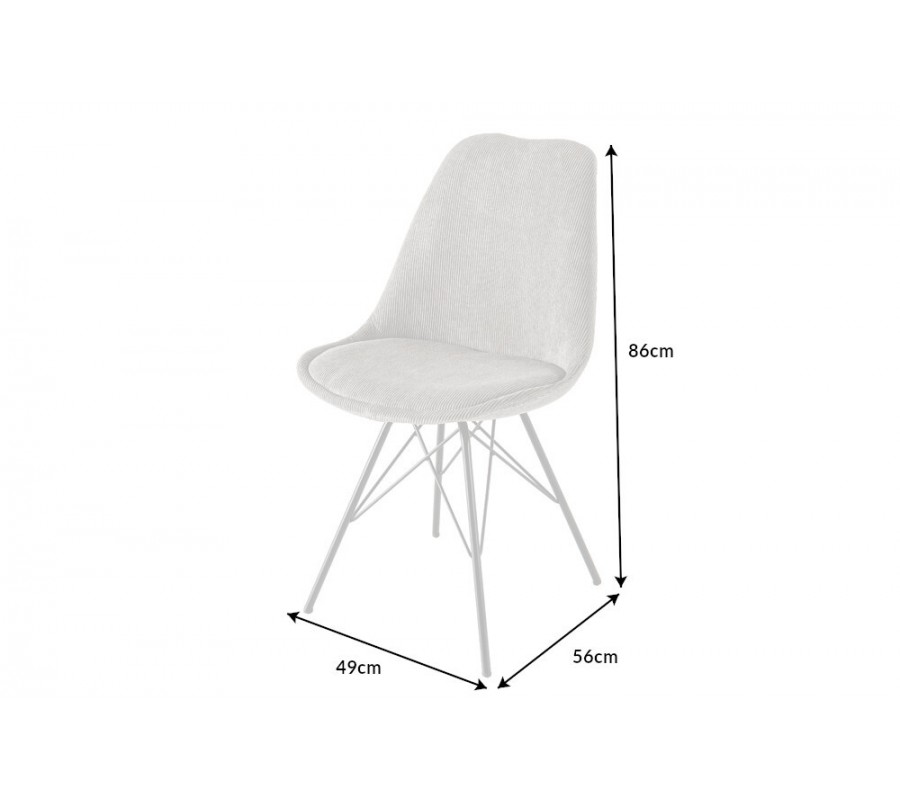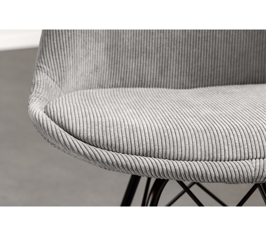 Designová moderní židle Scandinavia zaujme čistým a minimalistickým designem typickým pro skandinávský styl. Kovové nožičky s černým práškovým nástřikem jí dodávají industriální vzhled, který je zjemněn originálním šedým manšestrovým čalouněním, takže nepůsobí chladně. V jídelně v industriálním stylu ji můžete doplnit například černým jídelním stolem s kovovými prvky, ale šedé kordové čalounění vynikne iv obýváku ve skandinávkém stylu s barevnými doplňky. Pohodlí Vám zaručí zádová opěrka vysoká 42 cm a sedací část o rozměru 45x40 cm ve výšce sedu 49 cm. Židle má nosnost 120 kg.