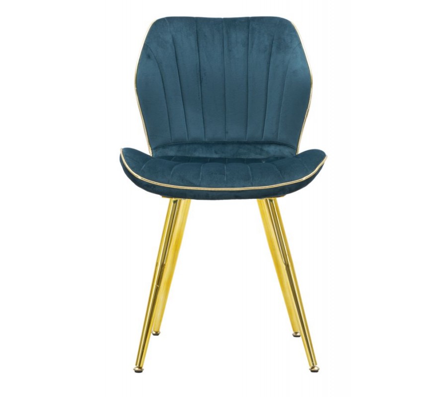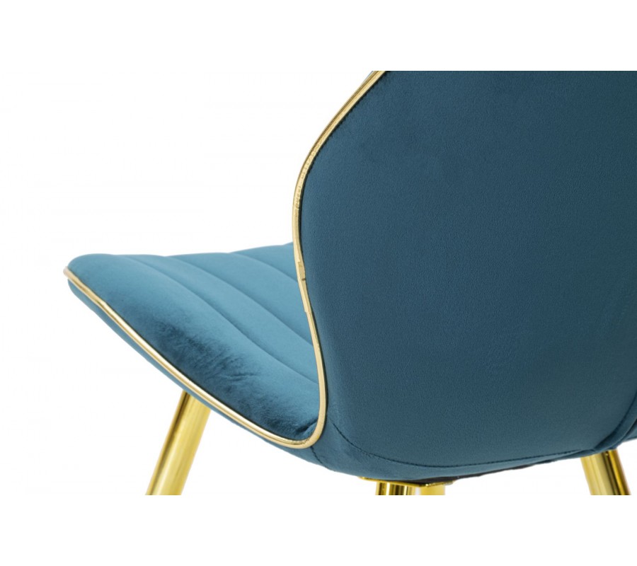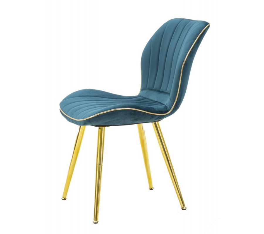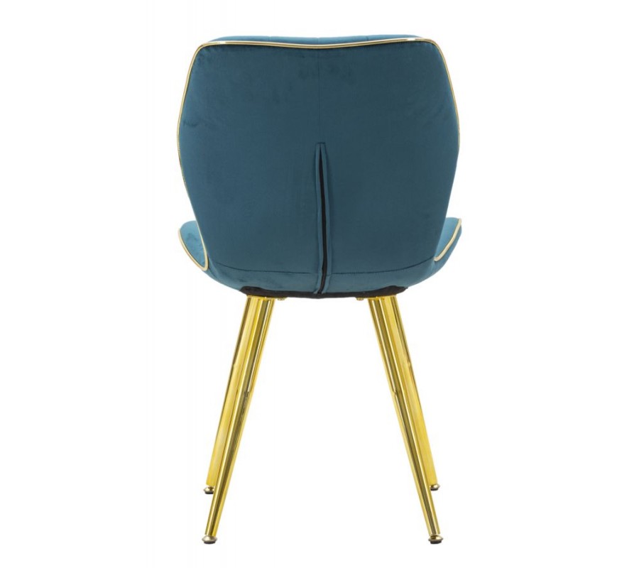 Opěradlo je mírně zaoblené pro pohodlnou oporu zad, přičemž jeho tvarování vytváří stylovou siluetu. Celkový dojem umocňujejemné zlaté rámování, které dodává židli exkluzivní nádech.Štíhlé kovové nožičky ve zlaté barvě jsou mírně zkosené, čímž zabezpečují stabilitu a zároveň působí snadno a vzdušně.