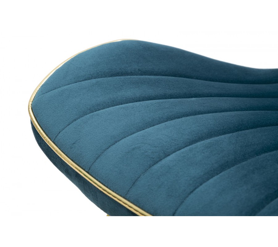 Art deco čalouněná prošívaná jídelní židle Dorena s sametovým petrolejovým modrým potahem a zlatými nožičkami 77 cm