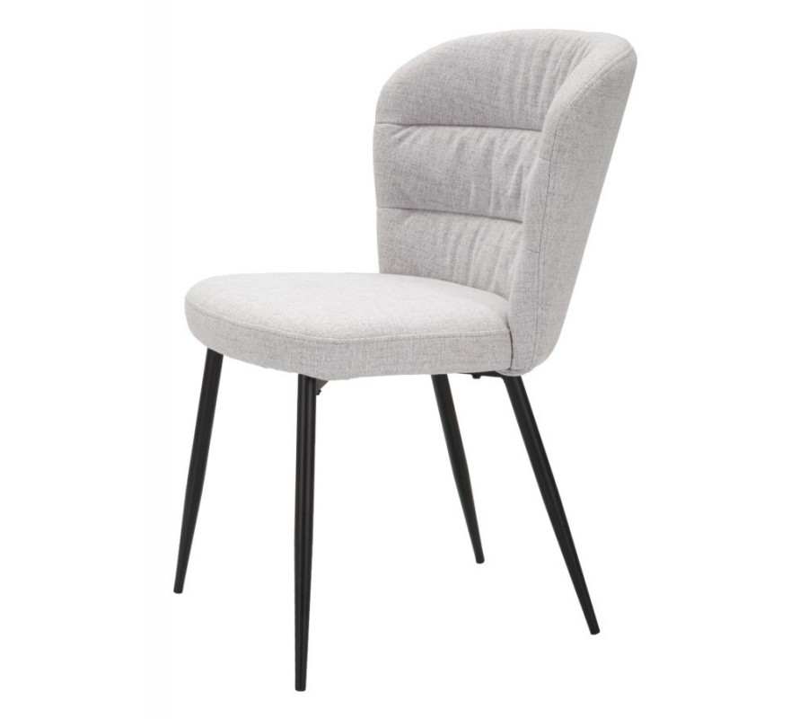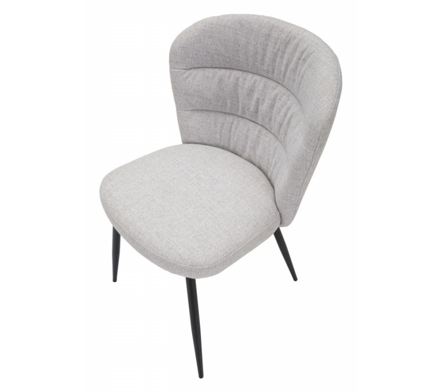 Moderní světle šedá jídelní židle Magnus s oblým čalouněným opěradlem a nožičkami z kovu v černé barvě 85 cm