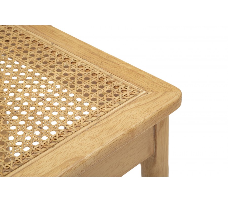 Čtvercové sedátko tvoří pevný dřevěný rám, který disponuje výpletem z přírodního ratanu, tento tradiční vídeňský výplet s drobnými kulatými otvory je nejen estetický, ale také funkční, poskytuje prodyšnost a pohodu. Dolní část sedáku je doplněna rámem pro maximální stabilitu.