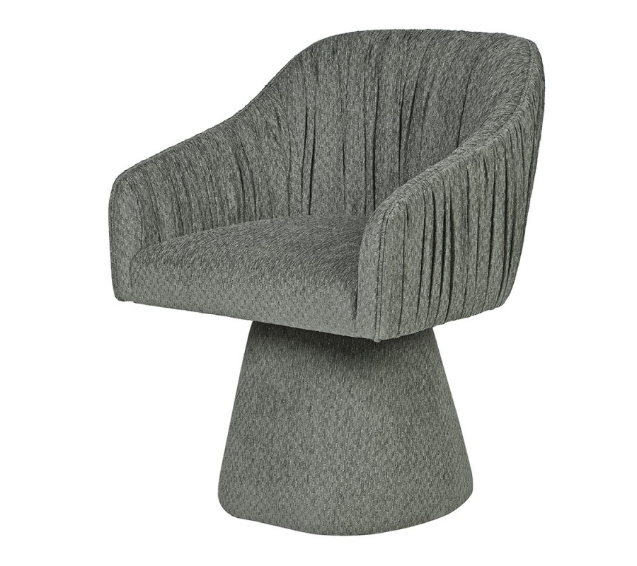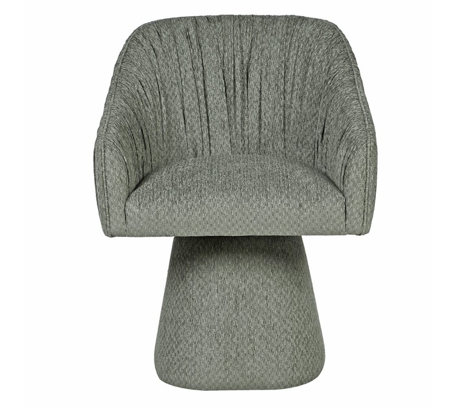 Moderní čalouněné křeslo Opera je luxusní designový solitér, který zaujme na první pohled svou originální siluetou a detailně propracovaným zpracováním. Stojí na stabilní podstavě ve tvaru seříznutého kužele, která mu dodává pevnost a moderní charakter. Boční opěrky plynule navazují na opěrku zad, čímž vytvářejí obklopující tvar, který poskytuje maximální pohodlí při sezení. Výrazným dekoračním prvkem je jemné řasení po vnitřních i vnějších stranách opěrek, které křeslu dodává eleganci a plastičnost. Povrch tvoří kvalitní textilní potah v tlumené zelené barvě, která působí sofistikovaně a snadno se kombinuje s jinými odstíny interiéru.
