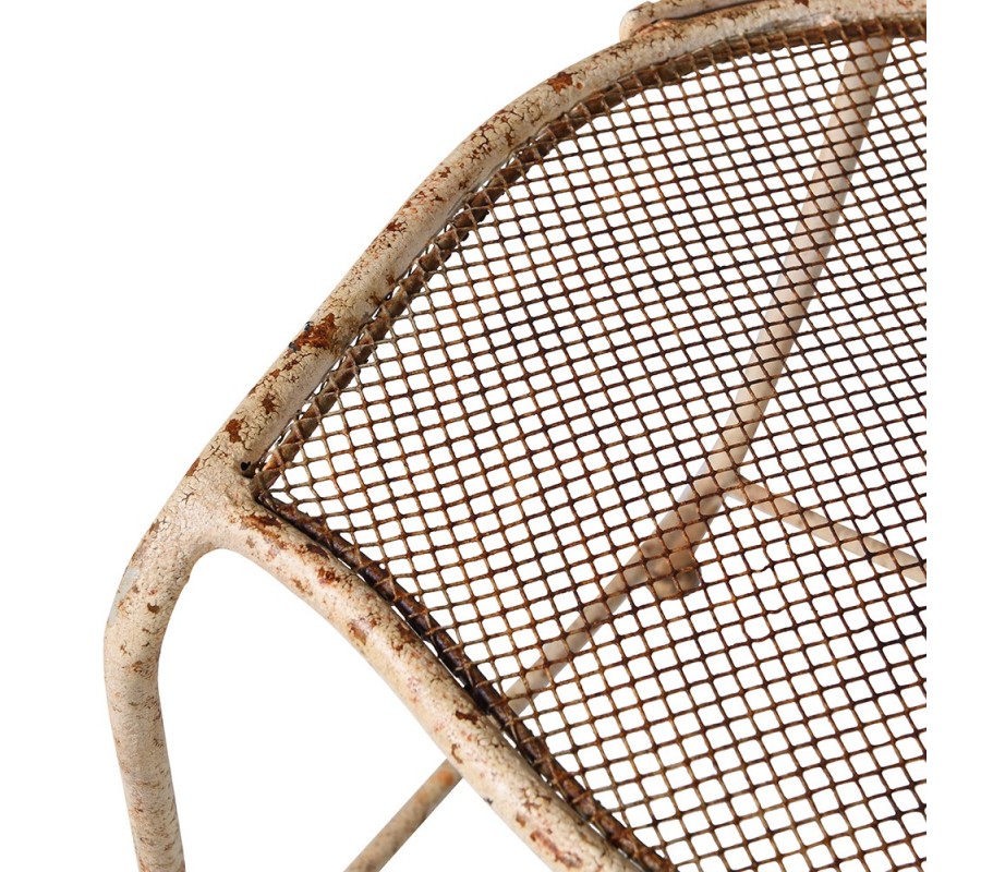 Vintage kovová béžová zahradní jídelní židle Bellezza s rezavou patinou a kovovým výpletem s diamantovým vzorem 90 cm