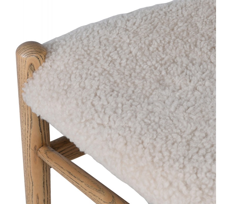 Stylová skandinávská jídelní židle Classic je kombinací přírodního materiálu a nadčasového designu. Vyrobena je z jasanového dřeva s hladkým povrchem a výraznou strukturou letokruhů, což podtrhuje její přírodní charakter. Sedák je čalouněný a potažený ovčí vlnou v bílé barvě, která dodává na pohodlí a zároveň působí moderně a útulně.
