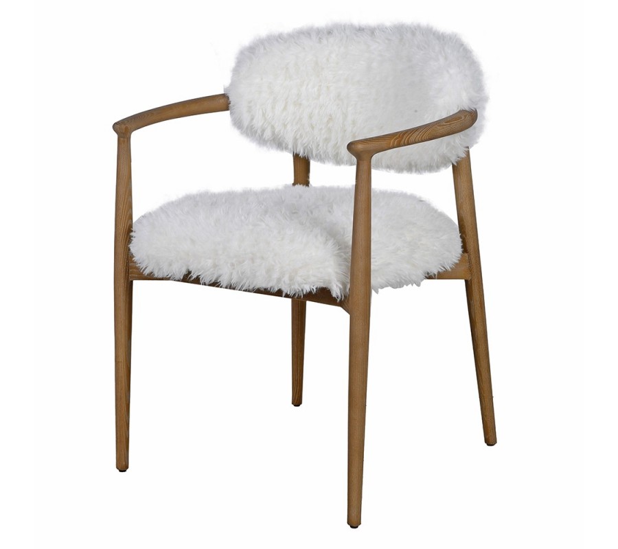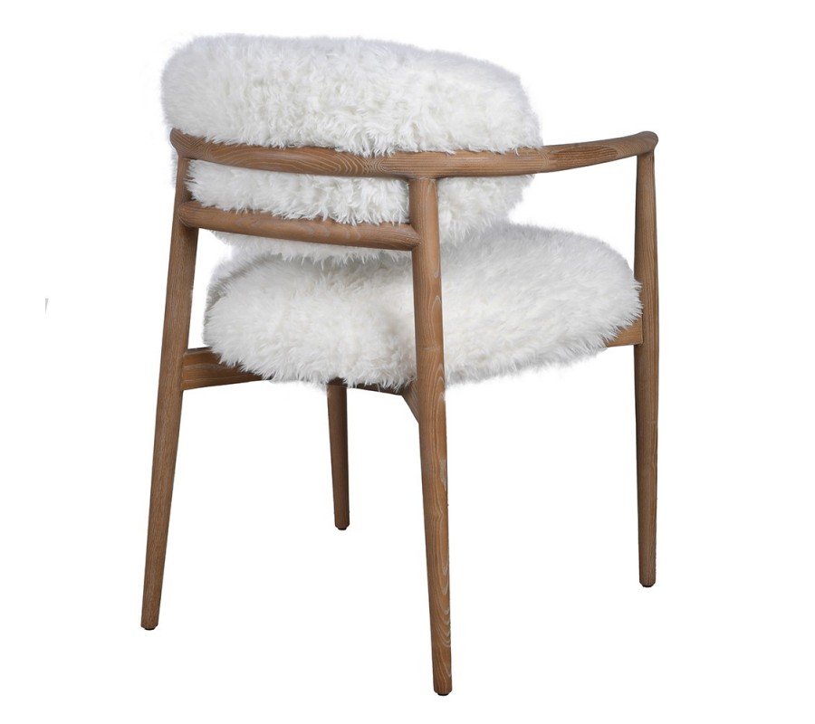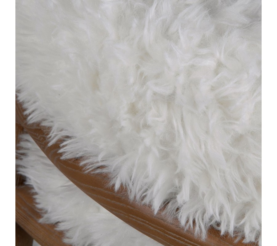 Retro jídelní židle Cozy s bílým kožešinovým potahem a jasanovou hnědou konstrukcí 80 cm