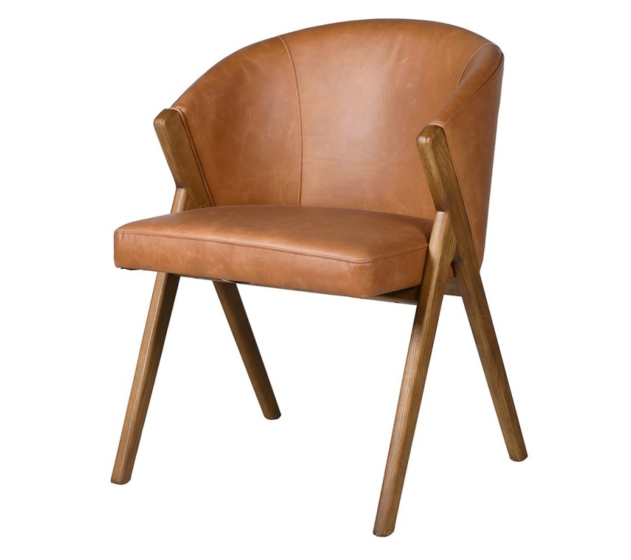 Luxusní designová jídelní židle Club s atypickými zkosenými opěrkami s potahem z hnědé pravé kůže a konstrukcí 80 cm