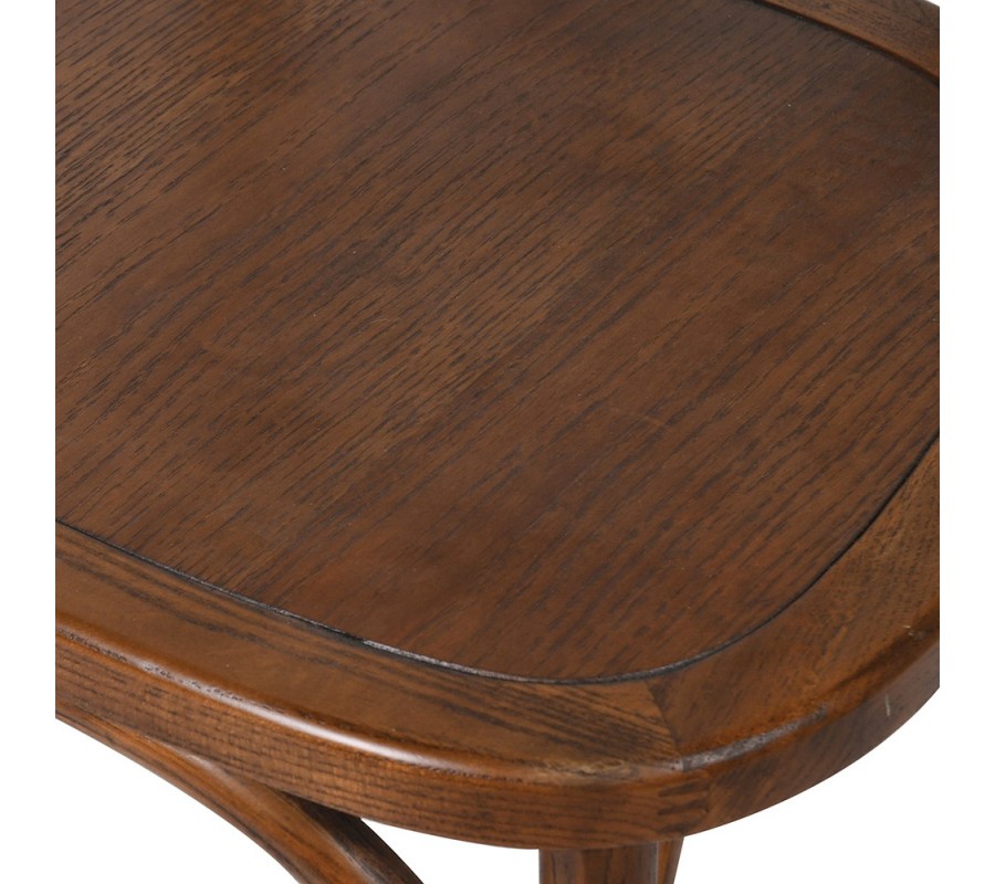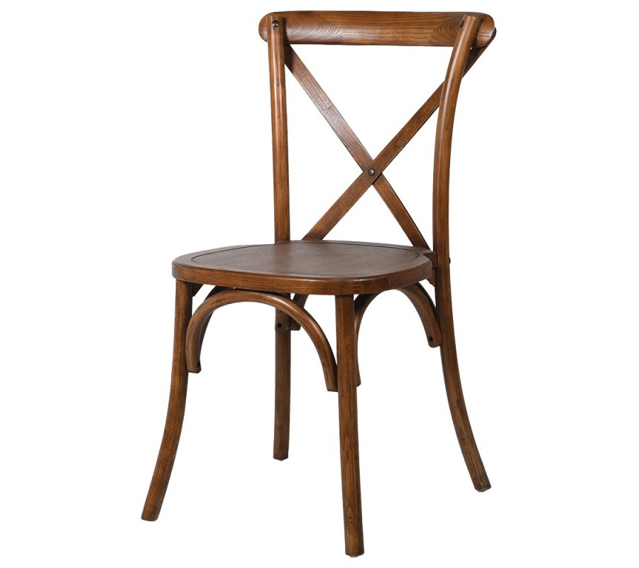 Kulaté sedátko bez čalounění zachovává přírodní vzhled dřeva a umožňuje snadnou údržbu, zatímco opěrka zad s charakteristickým překřížením ve tvaru X přináší klasický venkovský detail, který židli dodává osobitý šarm. Celkový tvar působí harmonicky a přirozeně, což z ní činí univerzální kousek vhodný do různých typů interiérů.