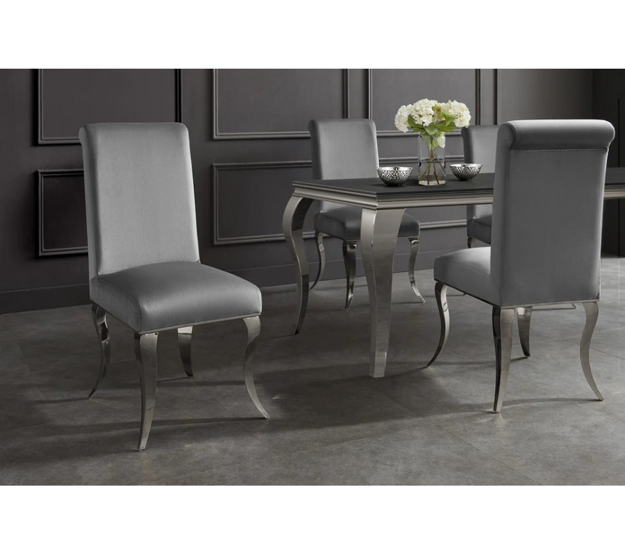 Designová moderní jídelní židle Modern Barock se stříbrnýma kabriolovýma nohama a šedým sametovým potahem 105 cm