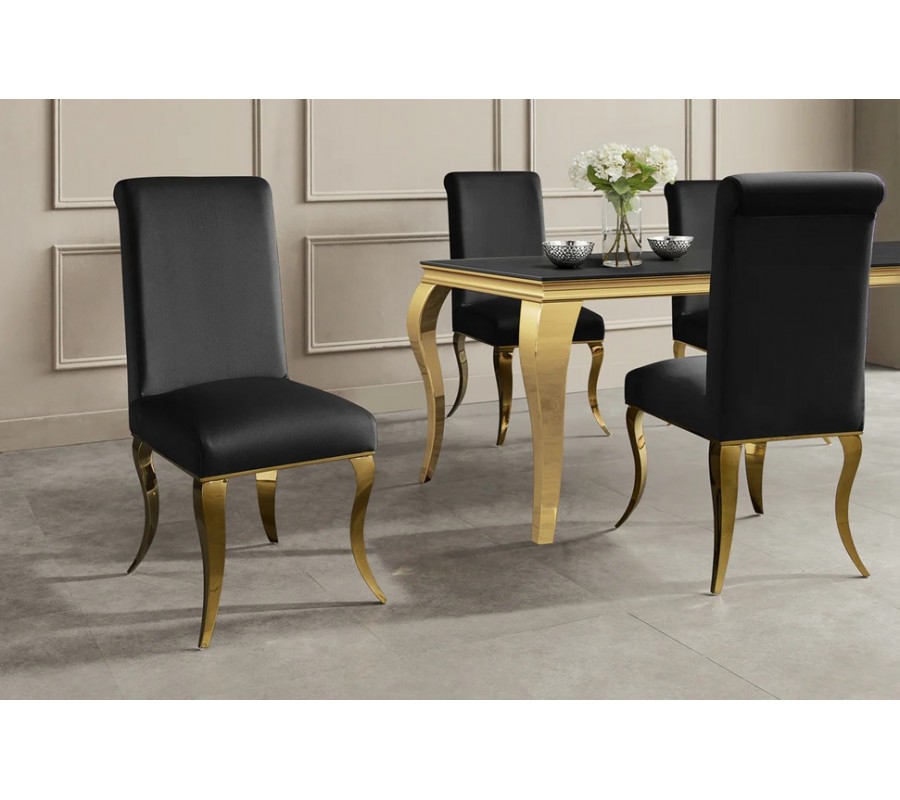 Designová jídelní židle Gold Barock z kolekce Gold Barock v černém provedení představuje spojení luxusního glamour stylu a ikonické barokní elegance.