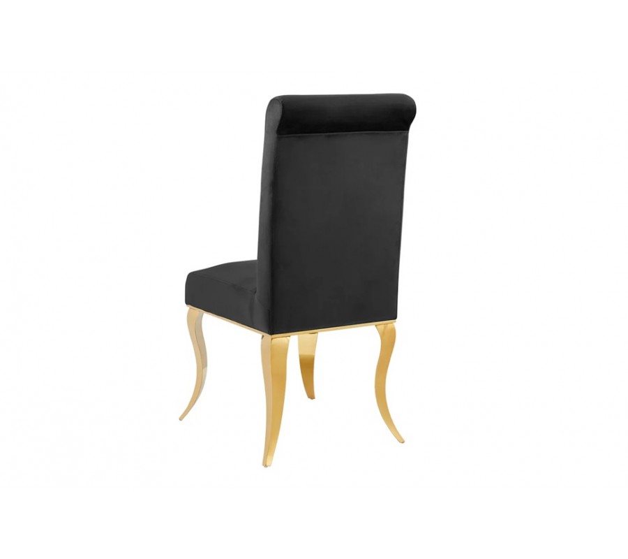 Designová glamour jídelní židle Gold Barock s kabriolovými nožičkami ve zlaté barvě a černým sametovým potahem 105 cm
