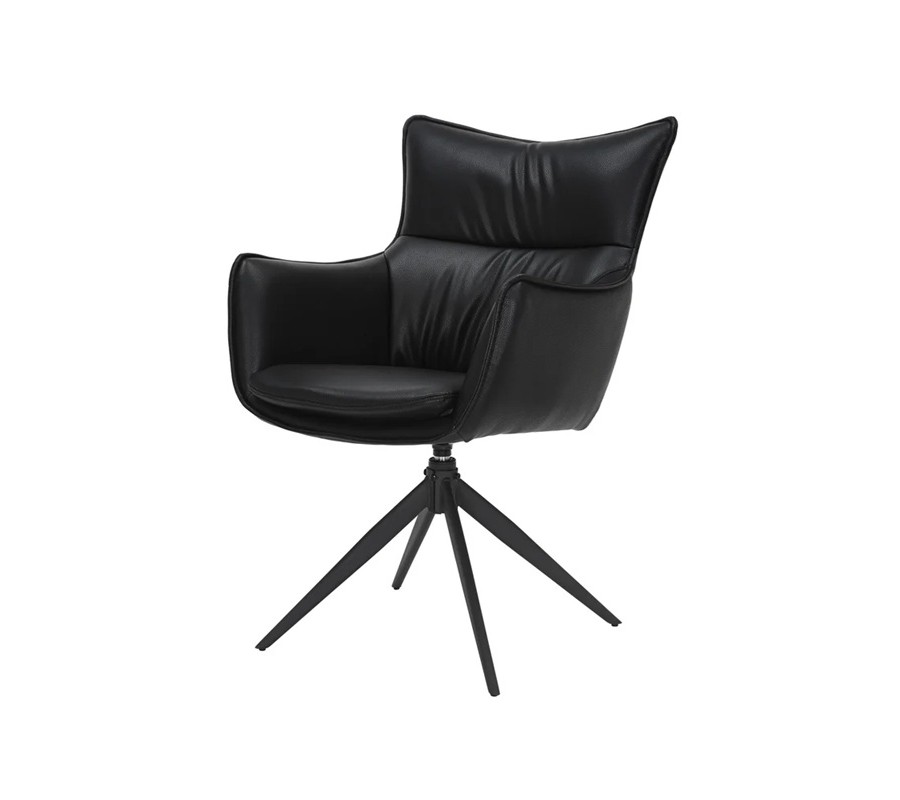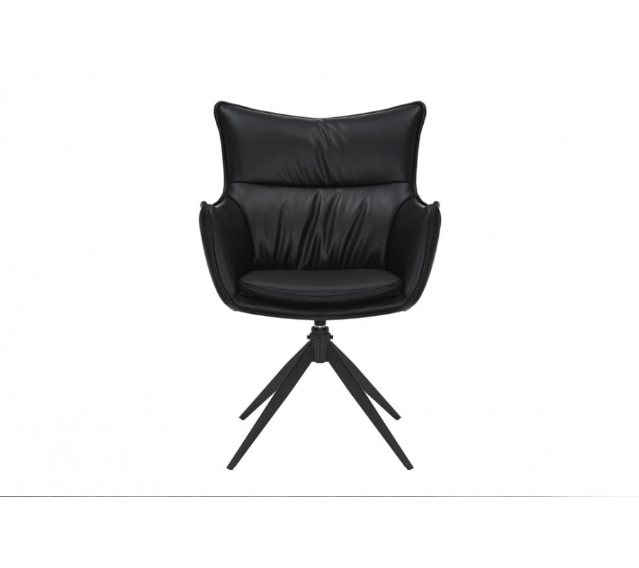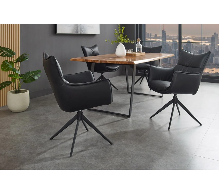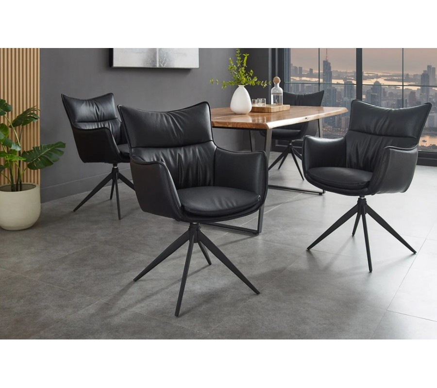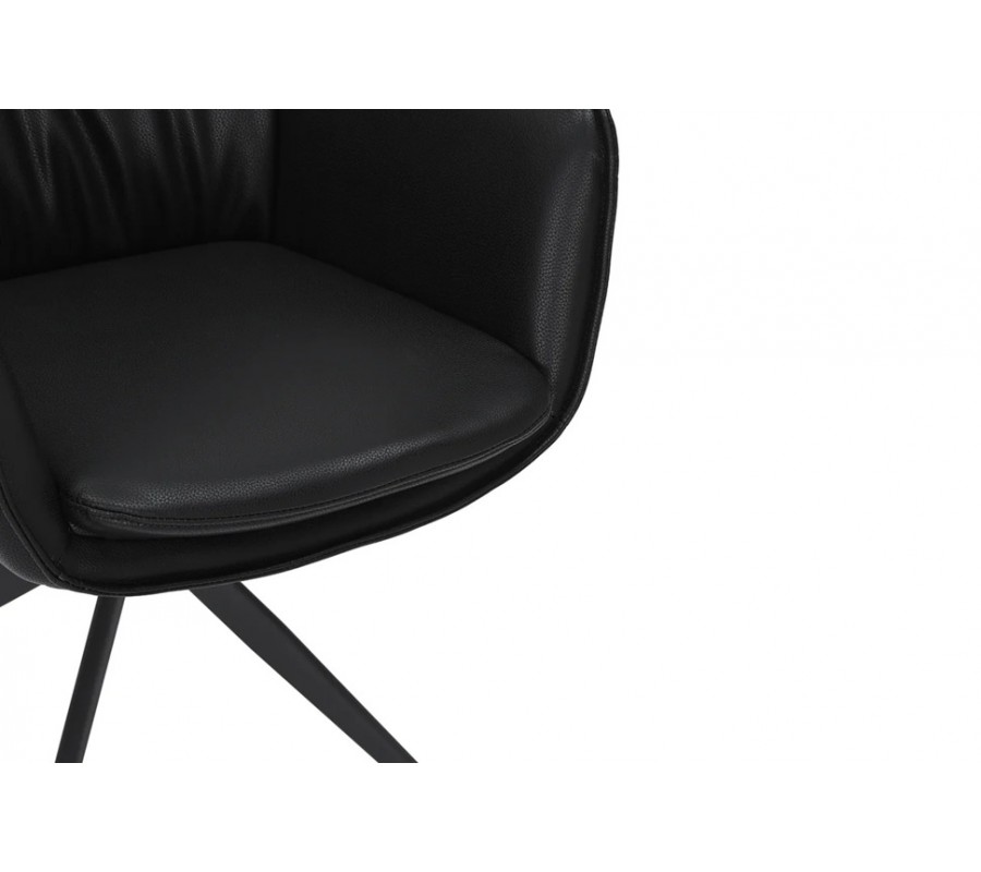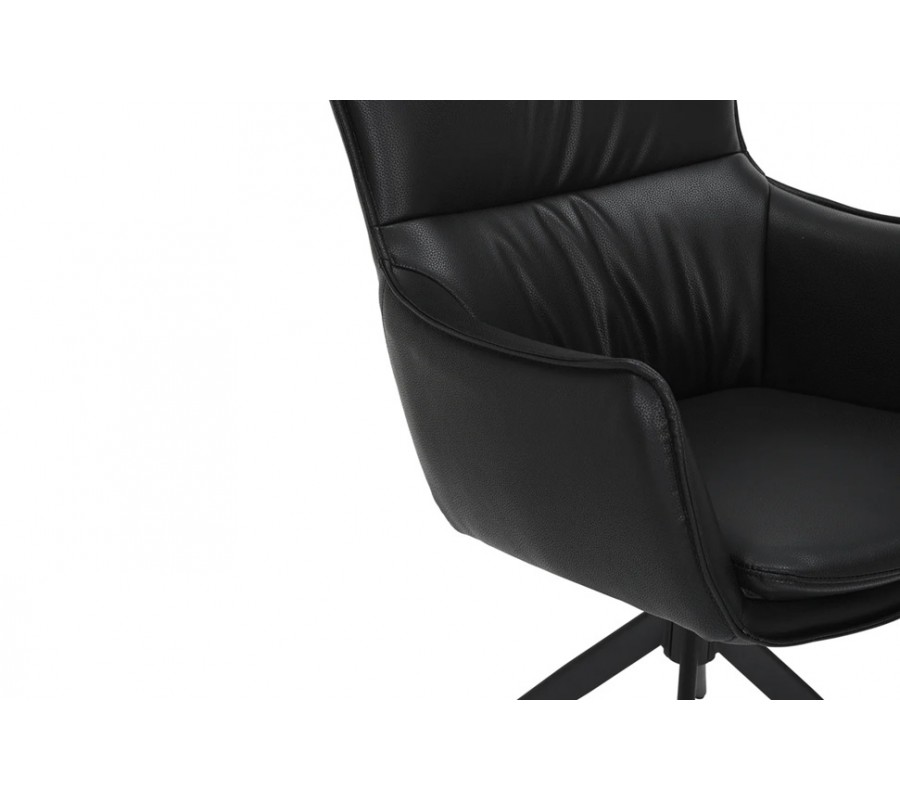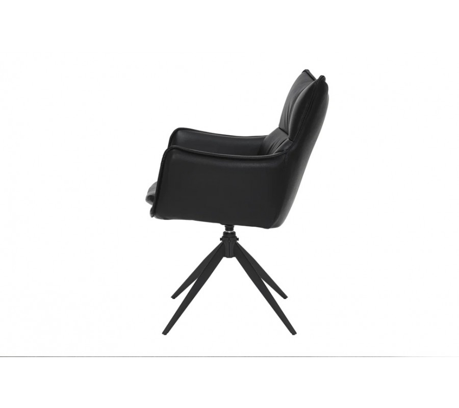 Designová industriální černá jídelní židle Krespa s otočným sedákem s opěrkami na ruce a potahem z ekokůže 60 cm