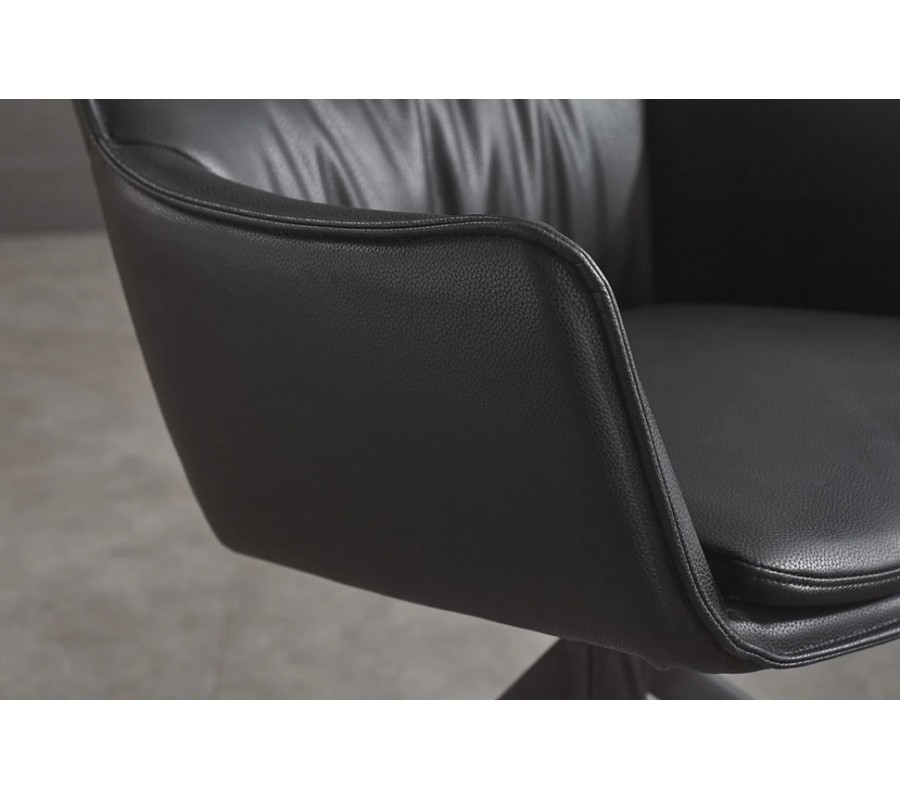 Ve spodní části se nachází kovová noha v matném černém provedení, která přináší do designu nádech industriálního stylu. Rozvětvuje se do čtyř zešikmených ramen, zatímco vrchní část s otočným mechanismem má válcovitý tvar. Ramena mají štíhlý profil a zajišťují výbornou stabilitu nábytku.